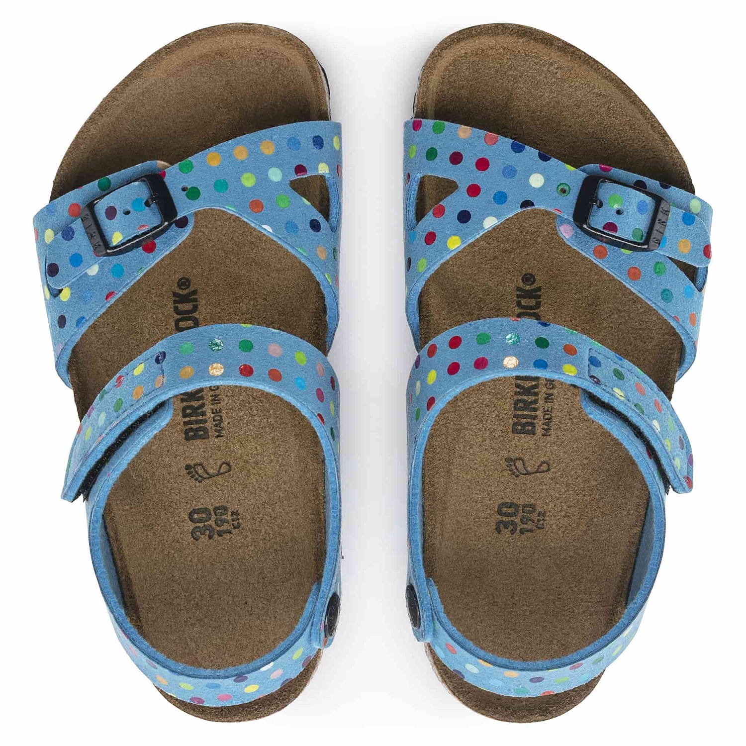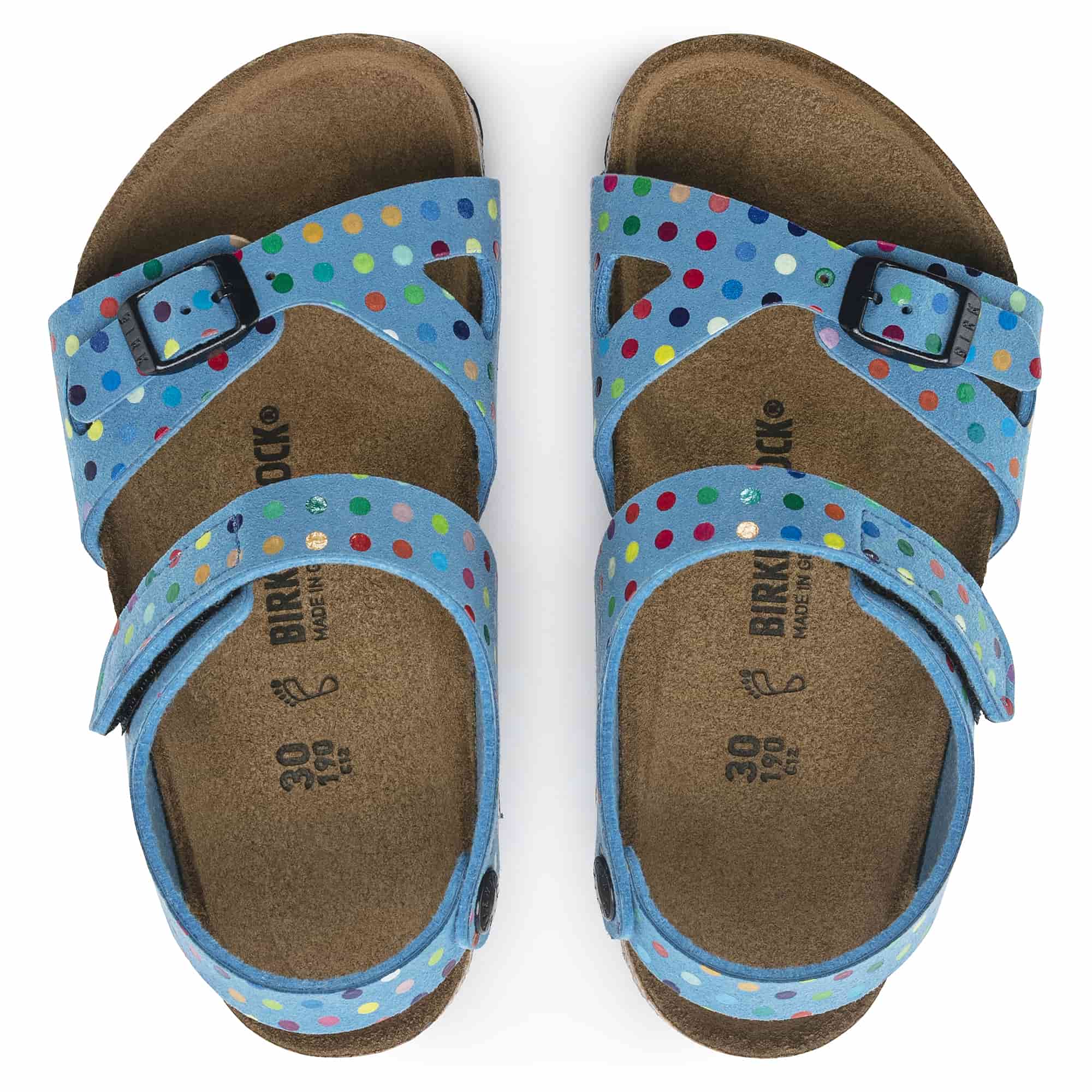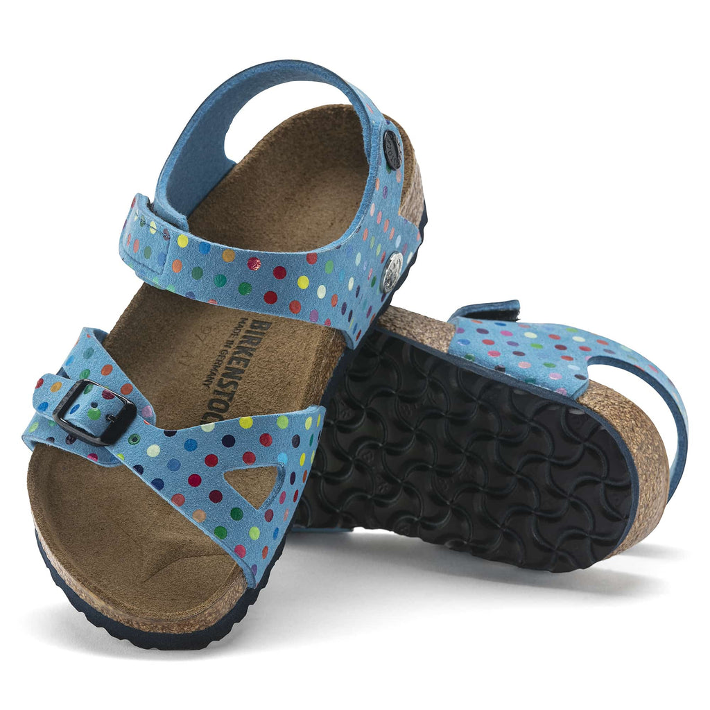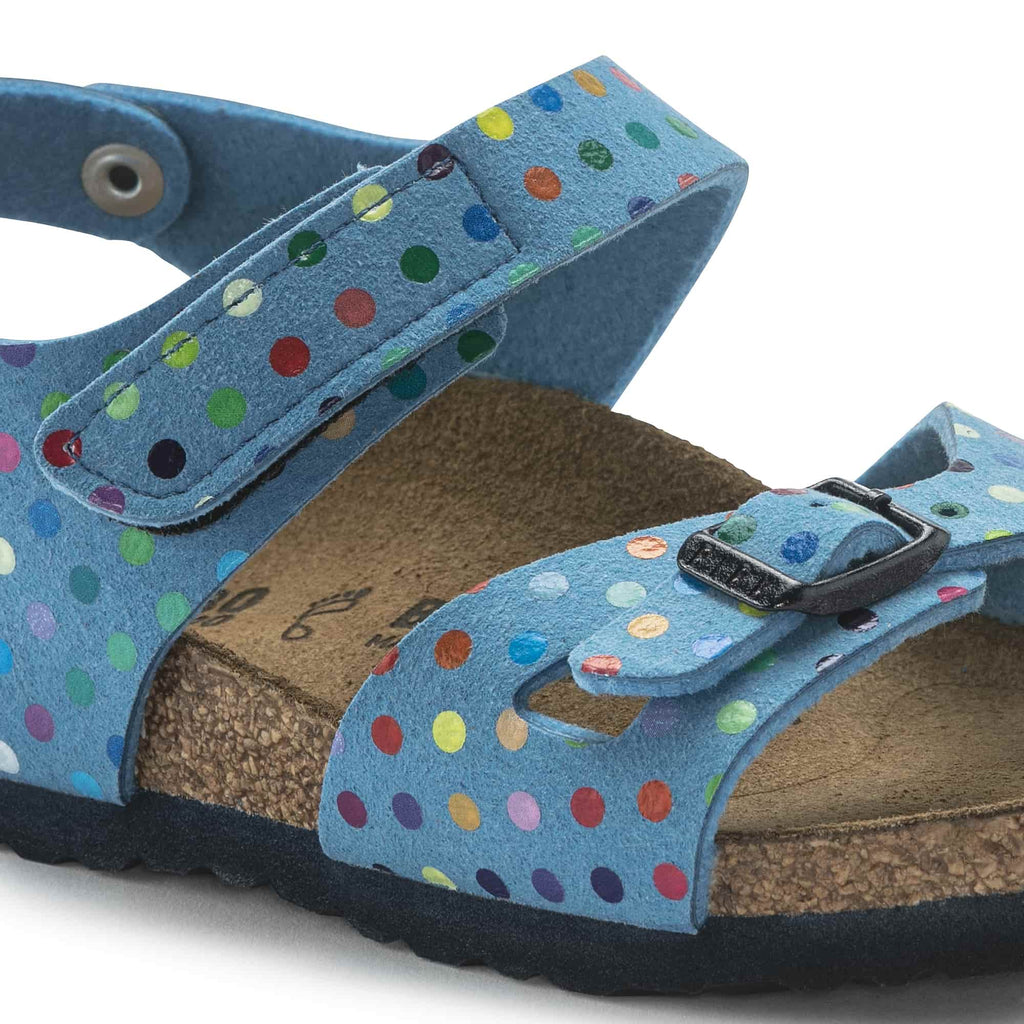 The BIRKENSTOCK Colorado is a variation on the classic Rio. The buckle at the ankle strap has been replaced by a hook-and-loop fastener, allowing it to be put on and taken off in an instant perfect for kids impatient feet! This version comes in a creatively vibrant play of colors and is just the thing for fans of the polka-dot print. The upper is made from skin-friendly microfiber.
