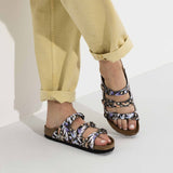 See an active day out in comfort! The BIRKENSTOCK Florida offers good grip and maximum comfort. Here, the sandal comes in a subtle floral design. With its additional foam layer, the soft footbed offers extra comfort and pampers feet all day long. The upper is made from the skin-friendly, hard-wearing synthetic material Birko-Flor®.