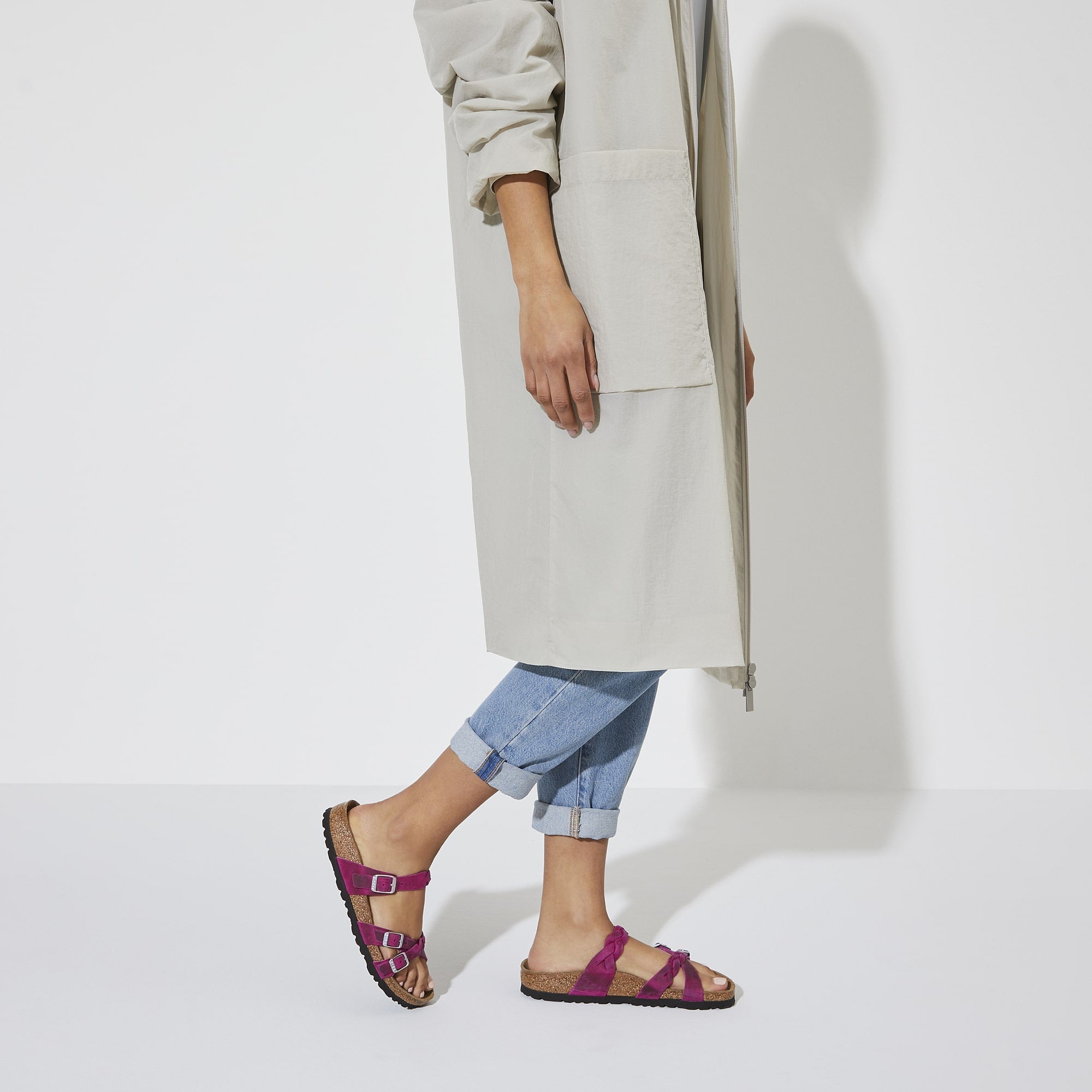 Oiled leather can be recognized by its untreated surface. BIRKENSTOCK purposely does not treat surface grains and other characteristic features. BIRKENSTOCK uses sturdy leather with a thickness of 2.8 to 3.2 millimeters as upper material.