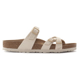 The BIRKENSTOCK Franca is a jaunty sandal with slim cross-over straps. The impressive combination of design and wearability will see fashion-conscious women through the day with elegance and comfort. This popular sandal has been given an update in a new material, with a vegan version now available. It is entirely free of animal products, as verified by independent testing laboratories. The color-coordinated buckles with a textile feel and a matte design as well as the color-coordinated outsole are additional eye-catchers. The upper is made from a soft fabric.