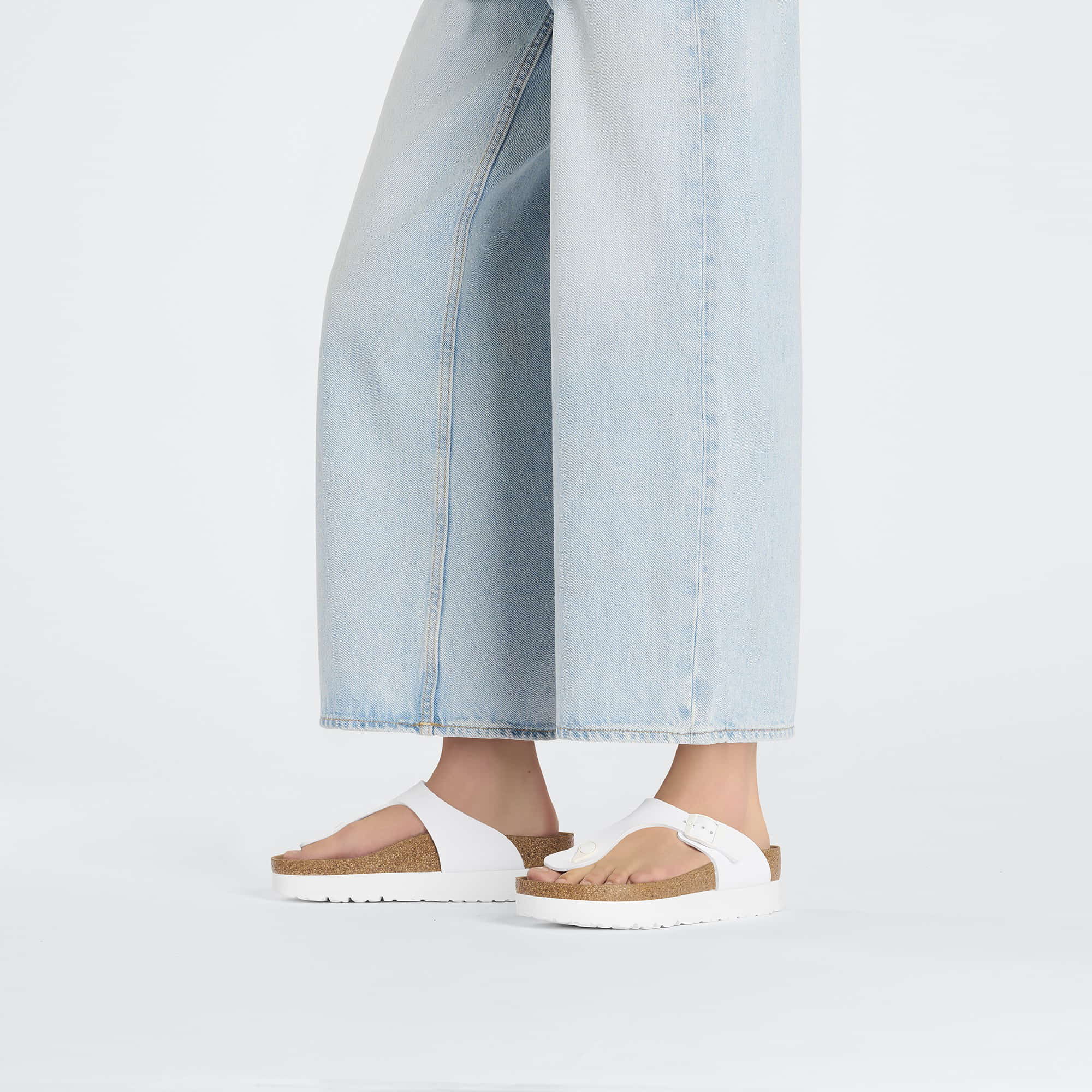 The BIRKENSTOCK Gizeh is a genuine classic and a stylish all-rounder. Our elegant thong sandal combines optimum grip with minimalist, fashionable design. This popular sandal has been given an update in a new material, with a vegan version now available. It is entirely free of animal products, as verified by independent testing laboratories. The color-coordinated details round off the shoe's look of sophistication. The upper is made from the skin-friendly, hard-wearing synthetic material Birko-Flor®.