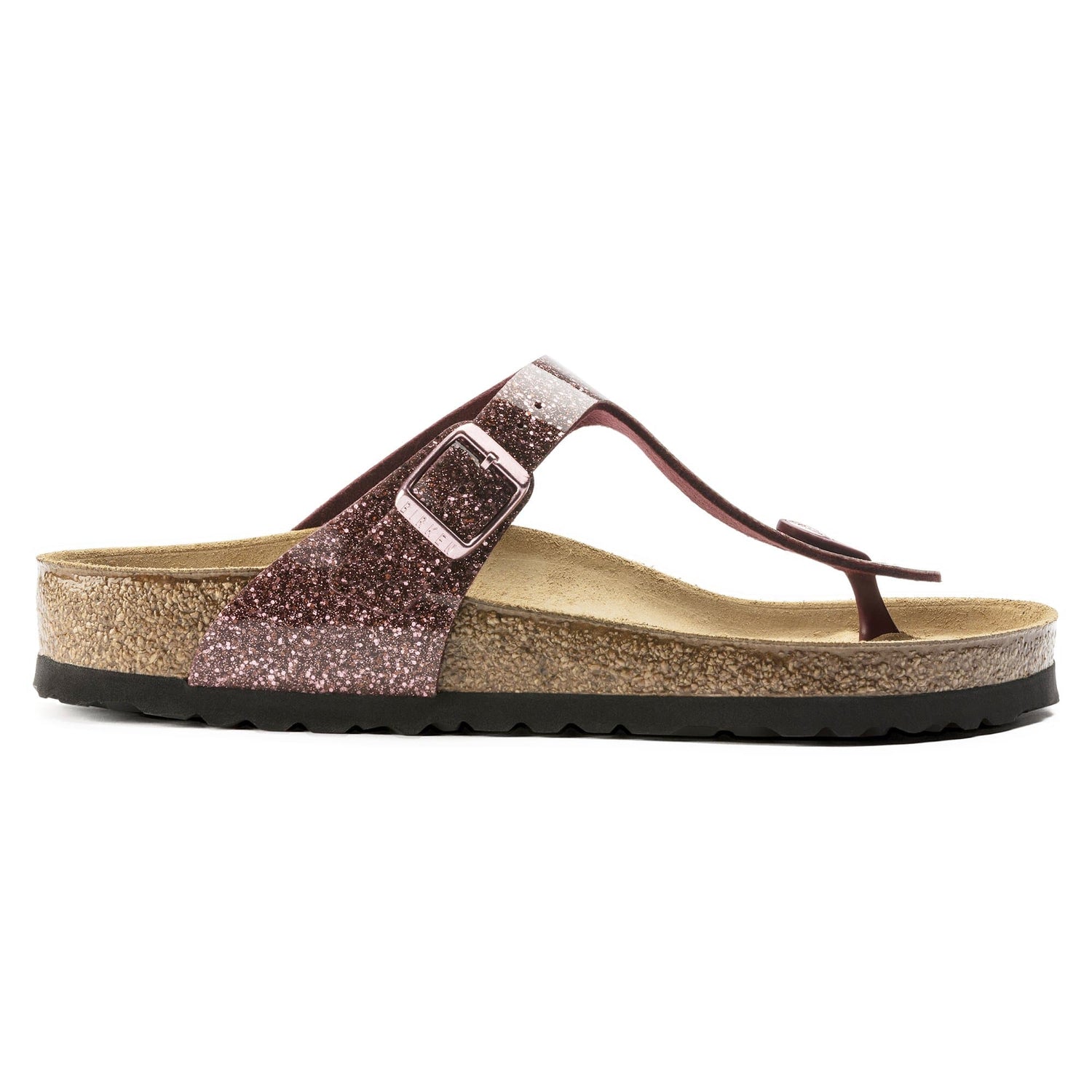 The BIRKENSTOCK Gizeh Birko-Flor Cosmic Sparkle Port sandals a genuine classic that combines optimum support with a modern, minimalist design. The Cosmic Sparkle version boasts a striking glitter effect and high-gloss coating, which gives this sandal a dazzling finish and makes it appear incredibly elegant. The upper is made of skin-friendly and durable Birko-Flor® synthetic material.