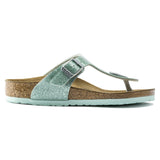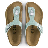 The BIRKENSTOCK Gizeh Birko-Flor Kids Electric Metallic Mineral Sandals a genuine classic that combines optimum grip with minimalist, fashionable design. This sandal was reinterpreted in an extravagant electric metallic look. The reflective film makes this classic model dazzle and is sure to make any outfit turn heads. The upper is made from the skin-friendly, hard-wearing synthetic material Birko-Flor.