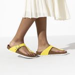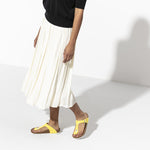The BIRKENSTOCK Gizeh is a genuine classic that combines optimum grip with minimalist, fashionable design. The color-contrasting outsole stands out strikingly against the upper and rounds off the look. The upper is made from the skin-friendly, hard-wearing synthetic material Birko-Flor® with a shiny patent coating.