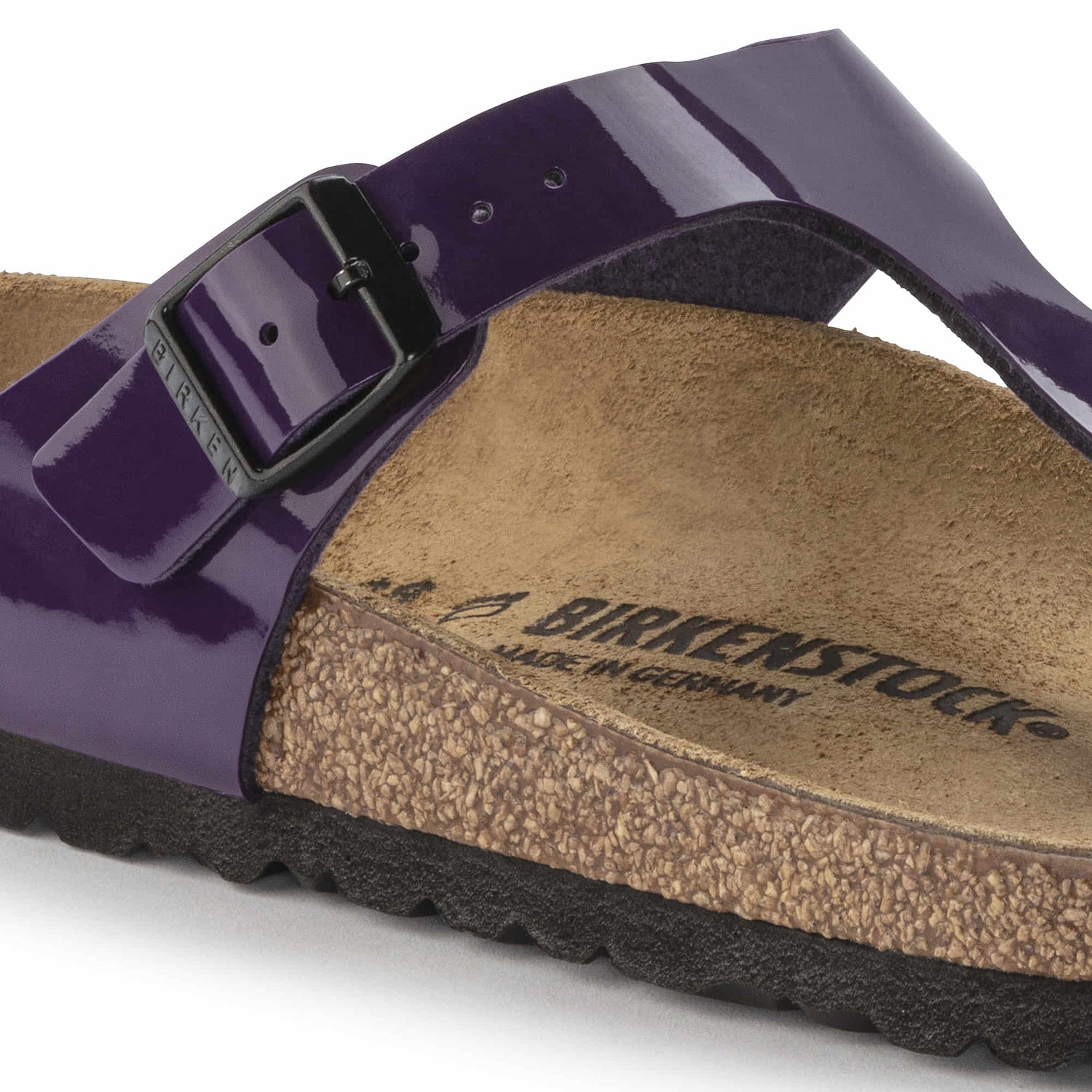 The modern thong sandal from Birkenstock. The Gizeh is a genuine classic with signature support and a refined, minimalist style. Shown in a fun and shiny patent Birko-Flor®.