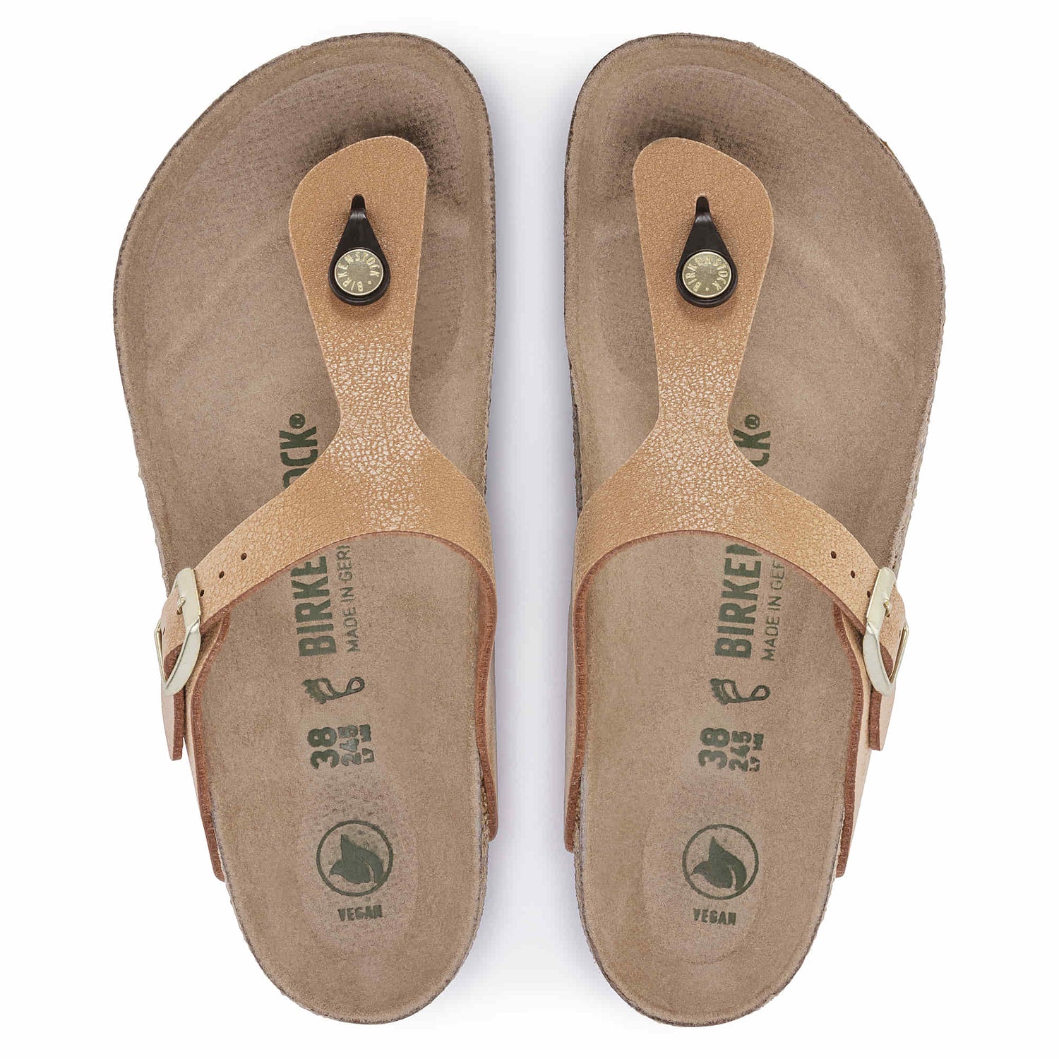 The BIRKENSTOCK Gizeh is a genuine classic that combines optimum grip with minimalist, fashionable design. The color-coordinated outsole rounds off the shoe's look of sophistication. This popular sandal has been given an update in a new material, with a vegan version now available. It is entirely free of animal products, as verified by independent testing laboratories. The upper is made from the skin-friendly, hard-wearing synthetic material Birko-Flor® in a sophisticated nubuck look which boasts a texture and color that could almost be mistaken for real leather.