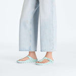 There are raised indentations at the front of the footbed near the toes. Thanks to the toe grip the toes remain loose and spread out in their natural position. The indentations also support the natural rolling motion of the toes.
