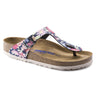 The BIRKENSTOCK Gizeh Birko-Flor Blue sandal is a genuine classic that combines optimum grip with minimalist, fashionable design. This is an especially feminine version of the sandal with delicate appliqu'© flowers. With its additional foam layer, the soft footbed offers extra comfort and pampers feet all day long. The upper is made from the skin-friendly, hard-wearing synthetic material Birko-Flor®.