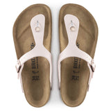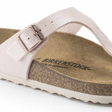 The Gizeh is a modern thong sandal from BIRKENSTOCK. Signature comfort with a refined, minimalist style, featuring the support of the iconic footbed. This version features a glossy, metallic snake pattern effect. The color-coordinated pin buckles round off the shoes look. The upper is made from the skin-friendly, hard-wearing synthetic material Birko-Flor®.