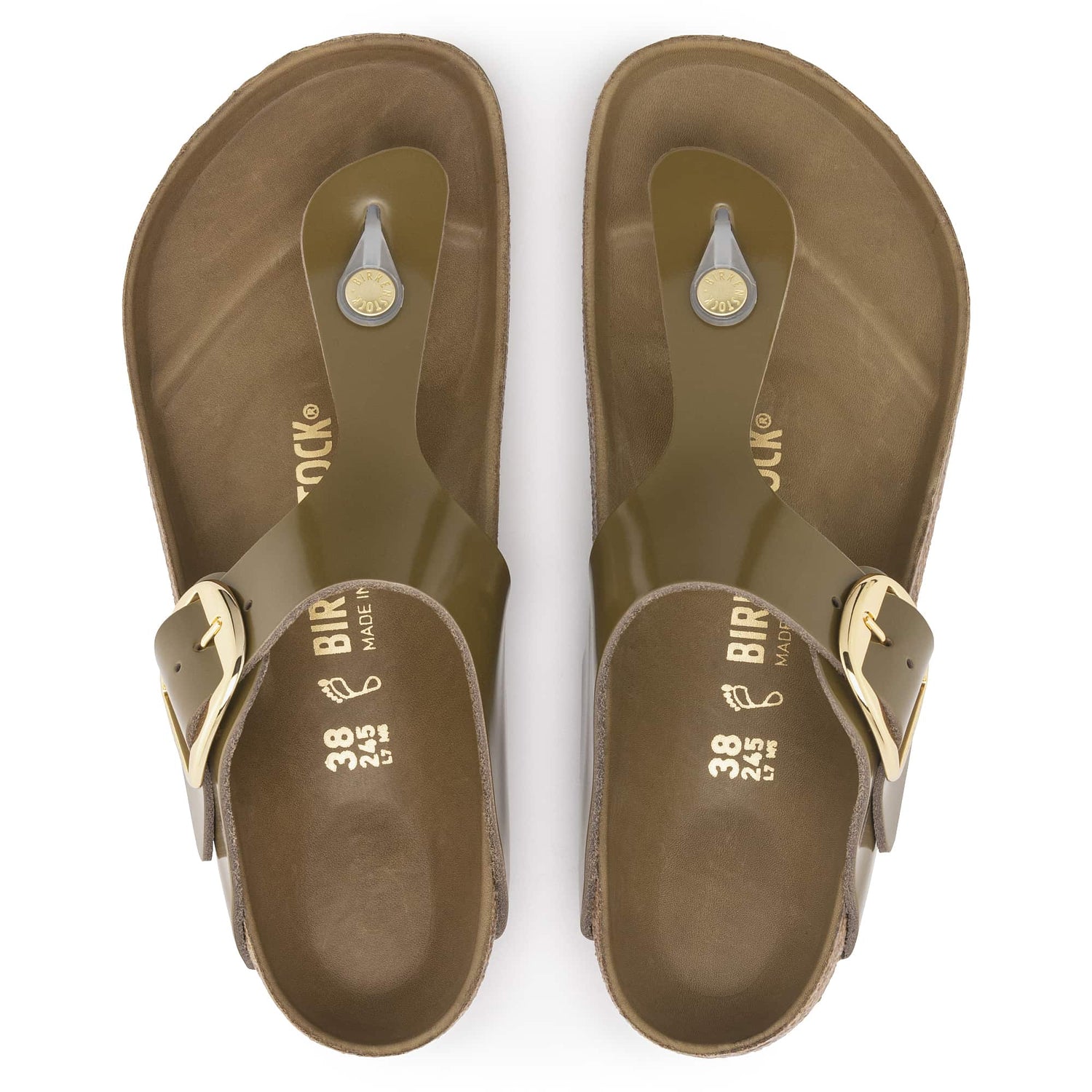 The BIRKENSTOCK Gizeh is a genuine classic that combines optimum grip with minimalist, fashionable design. The Big Buckle version features a large, elegant pin buckle. The semi-exquisite footbed is fully lined with soft piumato leather, making it exceptionally comfortable. The upper is made from high-quality natural leather with a shiny patent coating.