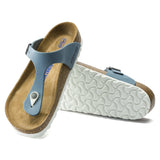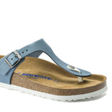 The BIRKENSTOCK Gizeh Soft Footbed Nubuck Leather Dove Sandal is a genuine classic and a stylish all-rounder. Our elegant thong sandal combines optimum grip with minimalist, fashionable design. With its additional foam layer, the soft footbed offers extra comfort and pampers feet all day long. The upper is made from high-quality nubuck leather that boasts a natural, rustic appearance.