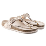 The BIRKENSTOCK Gizeh Suede Leather Black and Pink sandal is a genuine classic that combines optimum grip with minimalist, fashionable design. This version features a metallic foil in a vintage look. This model is perfect for anyone who wants their shoe to have a patina from the outset. The creative production process means that no two pairs are the same. The color-coordinated footbed rounds off the shoe look of sophistication. The upper is made from soft suede.