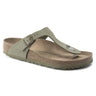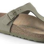 The BIRKENSTOCK Gizeh is a genuine classic that combines optimum grip with minimalist, fashionable design. This popular sandal has been given an update in a new material, with a vegan version now available. It is entirely free of animal products, as verified by independent testing laboratories. The upper is made from the skin-friendly, hard-wearing synthetic material Birko-Flor® in a sophisticated nubuck look which boasts a texture and color that could almost be mistaken for real leather.
