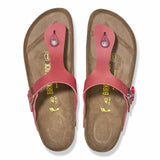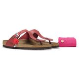 The BIRKENSTOCK Gizeh is a genuine classic and a stylish all-rounder. Our elegant thong sandal combines optimum grip with minimalist, fashionable design. We are now giving this popular classic the opportunity to show off its original design in our anniversary collection. With its buckles, the footbed stamp, the outsole, and the packaging, the sandal replicates the 1983 original and exudes veritable retro flair. The upper is made from soft, oiled natural leather.