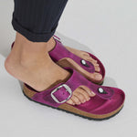 - Details: thong with an individually adjustable metal pin buckle
