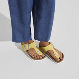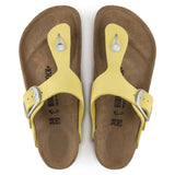 The BIRKENSTOCK Gizeh is a genuine classic that combines optimum grip with minimalist, fashionable design. The Big Buckle version features a large, elegant pin buckle'a fantastic, striking eye-catcher on this otherwise understated sandal. The upper is made from high-quality nubuck leather that boasts a natural, rustic appearance.