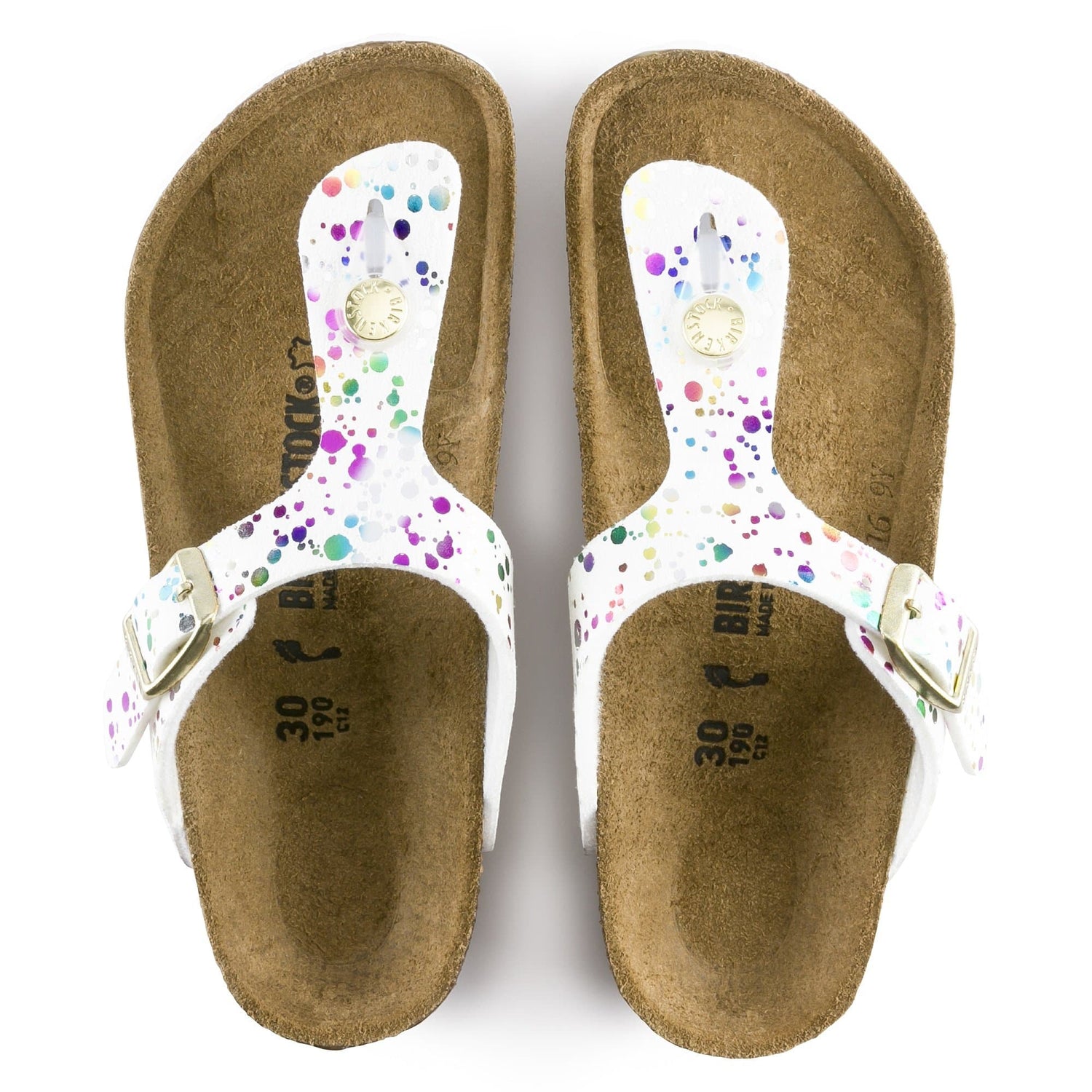 The BIRKENSTOCK Gizeh is a genuine classic that combines optimum grip with fashionable design to really turn heads at school. This version comes in a creatively vibrant play of colors that bring confetti to mind. A special film coating creates a quality glitter effect. The color-coordinated outsole rounds off the shoe look of sophistication. The upper is made from a skin-friendly synthetic material.