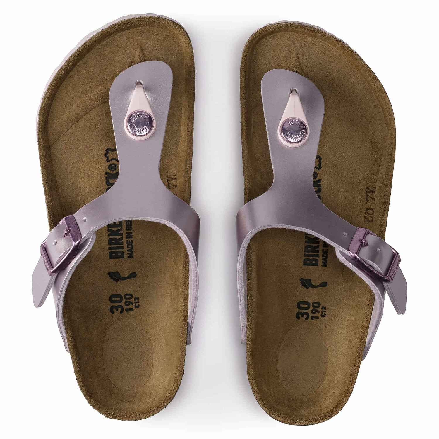 The BIRKENSTOCK Gizeh is a genuine classic that combines optimum grip with fashionable design to really turn heads at school. This sandal was reinterpreted in an extravagant electric metallic look. The reflective film makes this classic model dazzle and is sure to make any outfit turn heads. The color-coordinated outsole and the buckles round off the shoe look of sophistication. The upper is made from the skin-friendly, hard-wearing synthetic material Birko-Flor®.