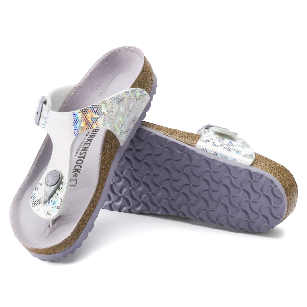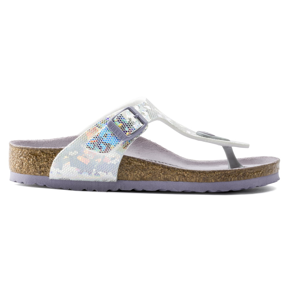 Birkenstock Hologram Silver Lavender Gizeh Kids Synthetics Detail View