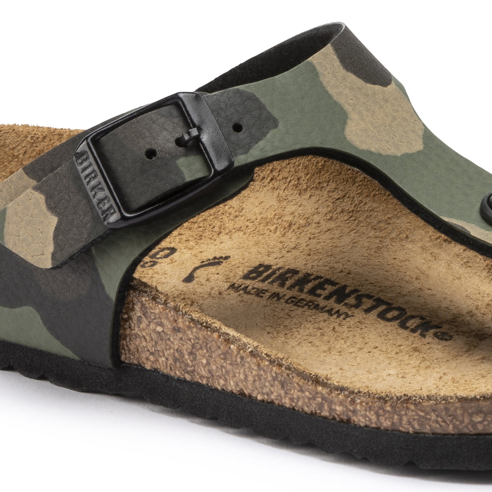 The BIRKENSTOCK Gizeh is a genuine classic that combines optimum grip with fashionable design to really turn heads at school. The upper is made from the skin-friendly, hard-wearing synthetic material Birko-Flor®. This version of the sandal is tone-on-tone, giving it a trendy camouflage look. It can easily be mistaken for genuine leather.