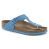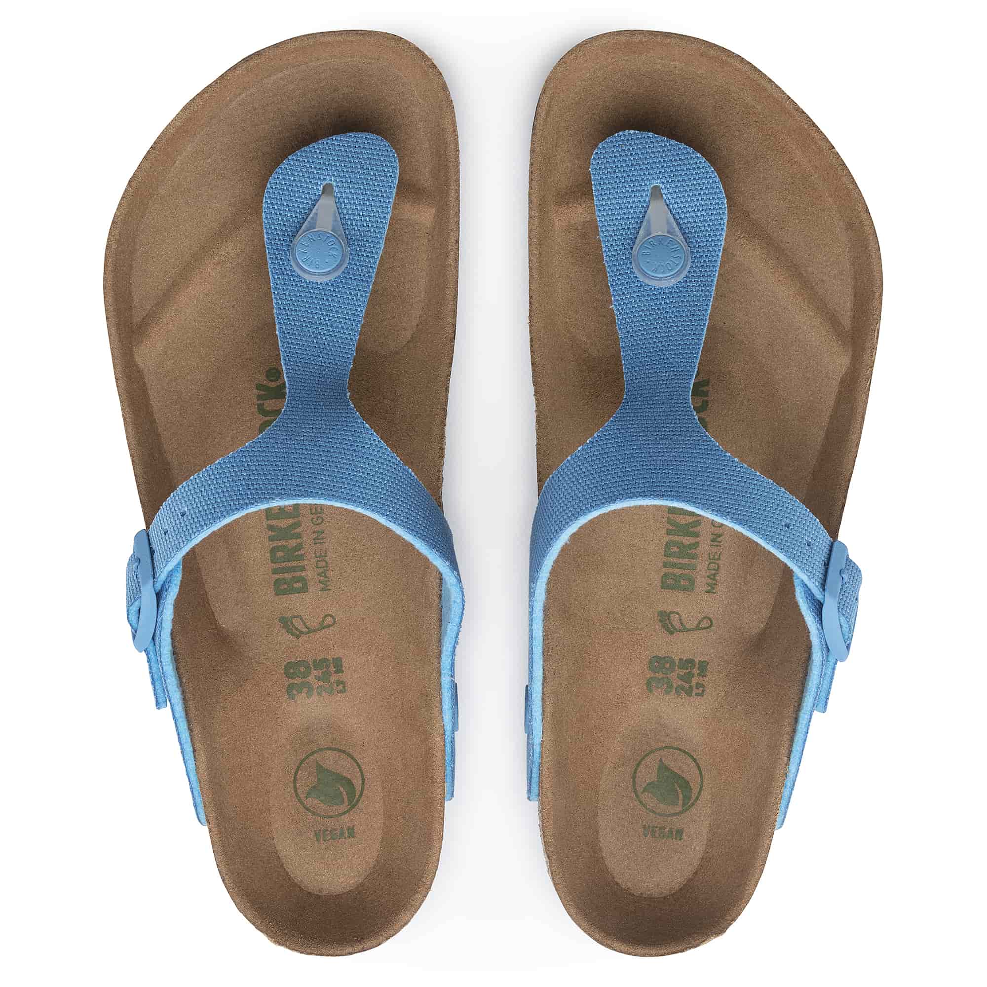 The BIRKENSTOCK Gizeh is a genuine classic that combines optimum grip with minimalist, fashionable design. This popular sandal has been given an update in a new material, with a vegan version now available. It is entirely free of animal products, as verified by independent testing laboratories. The color-coordinated buckles with a textile feel and a matte design as well as the color-coordinated outsole are additional eye-catchers. The upper is made from a soft fabric.