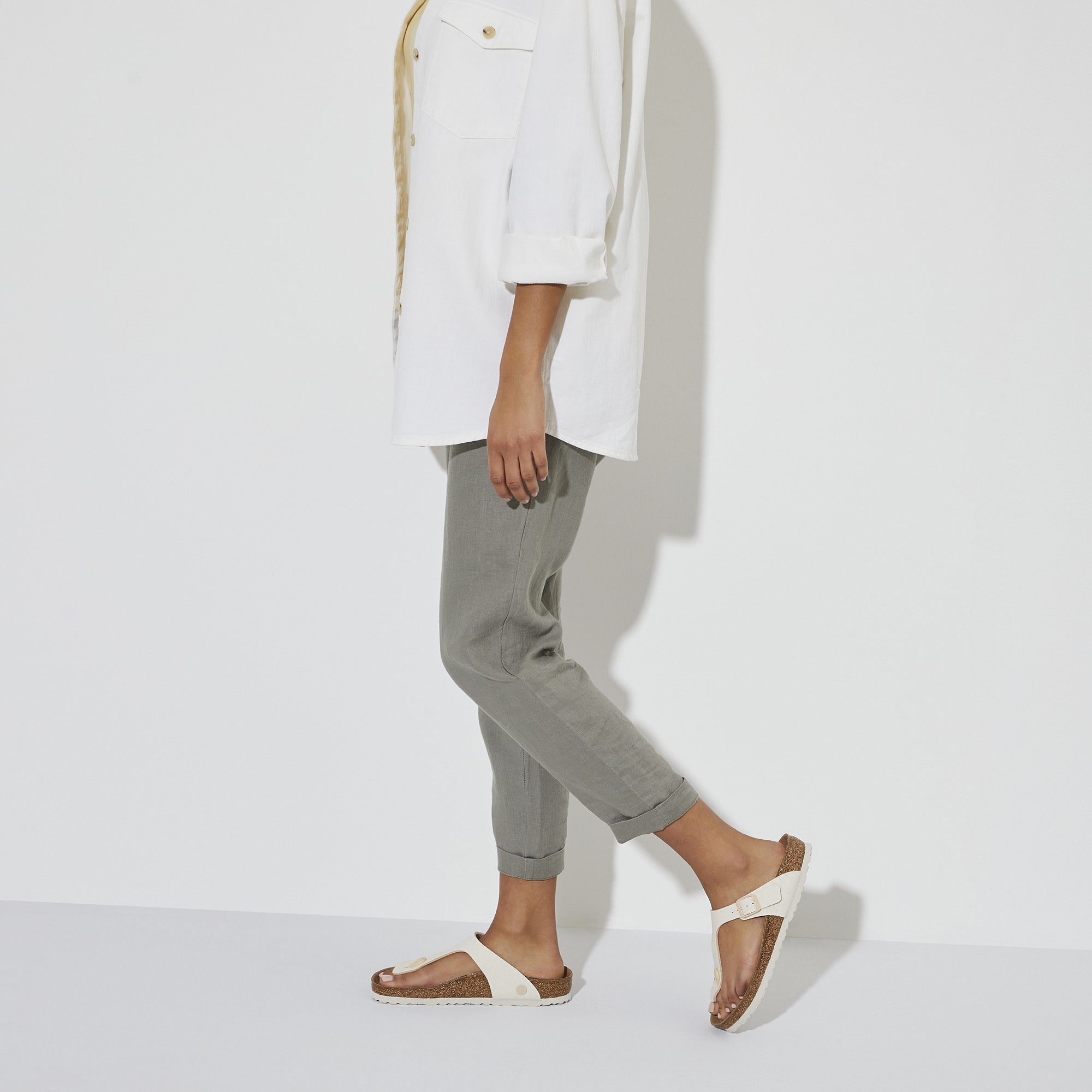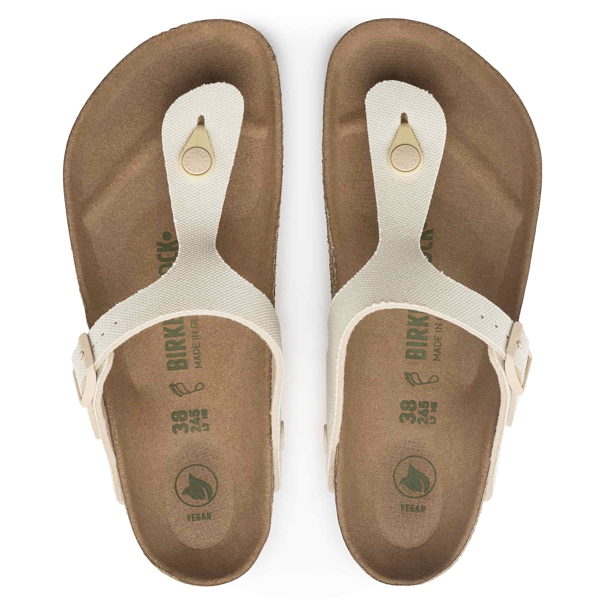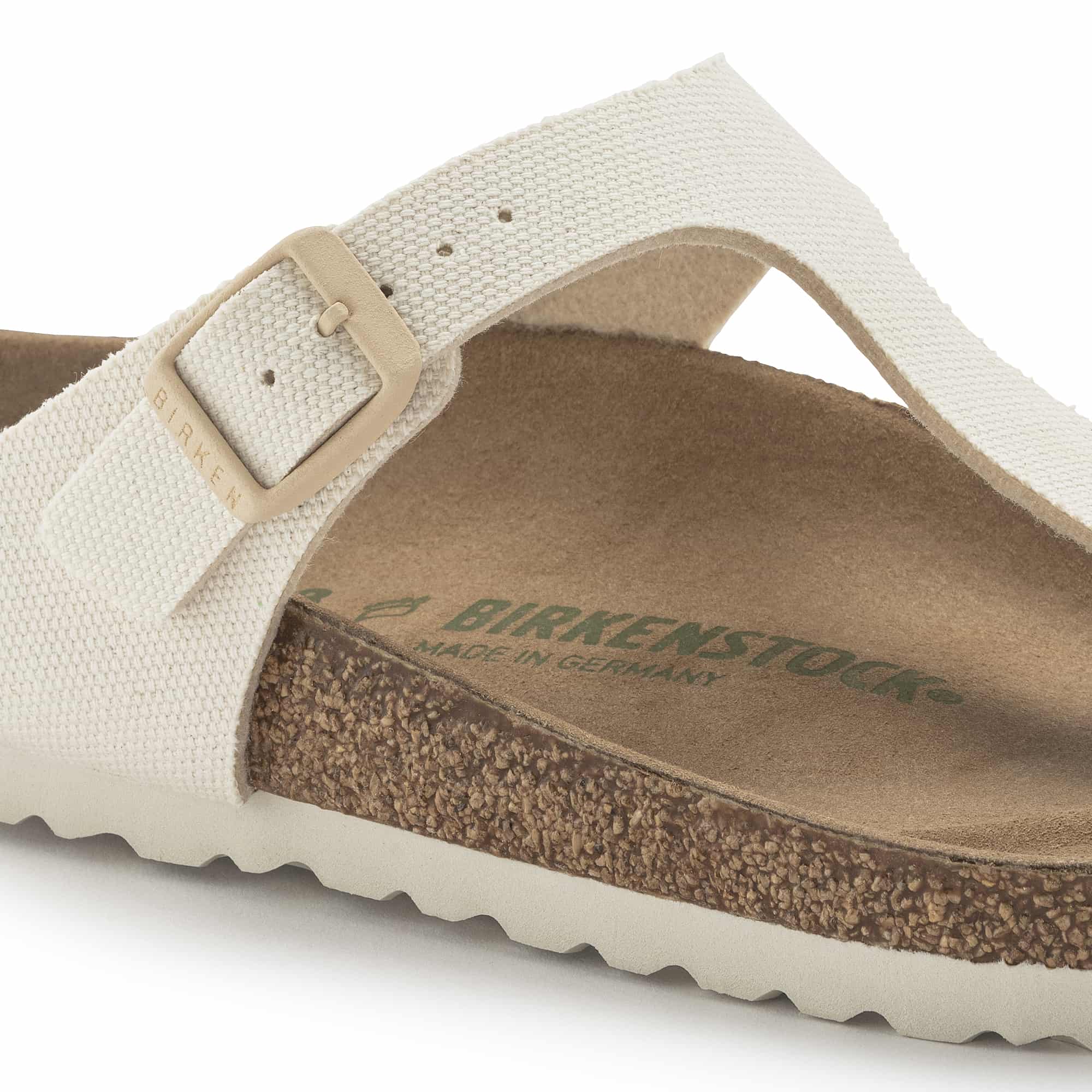 The BIRKENSTOCK Gizeh is a genuine classic that combines optimum grip with minimalist, fashionable design. This popular sandal has been given an update in a new material, with a vegan version now available. It is entirely free of animal products, as verified by independent testing laboratories. The color-coordinated buckles with a textile feel and a matte design as well as the color-coordinated outsole are additional eye-catchers. The upper is made from a soft fabric.