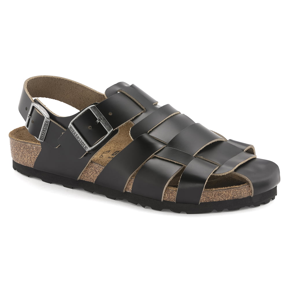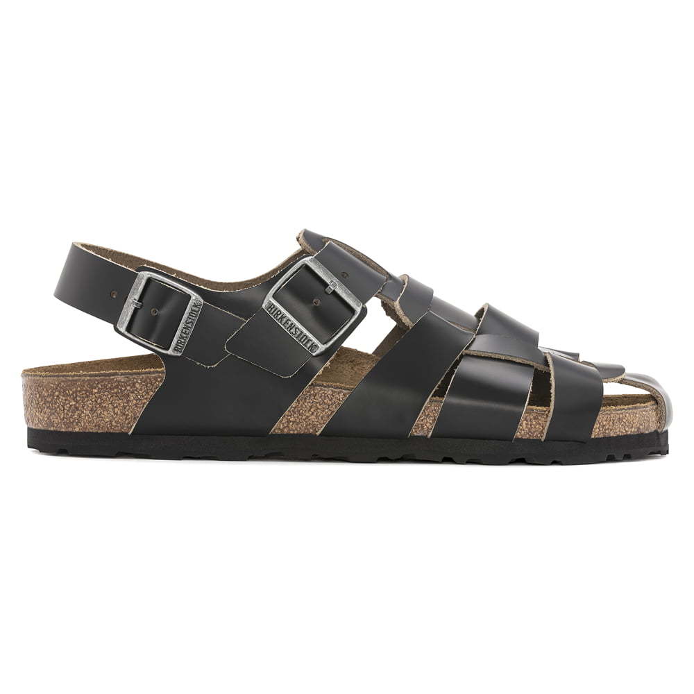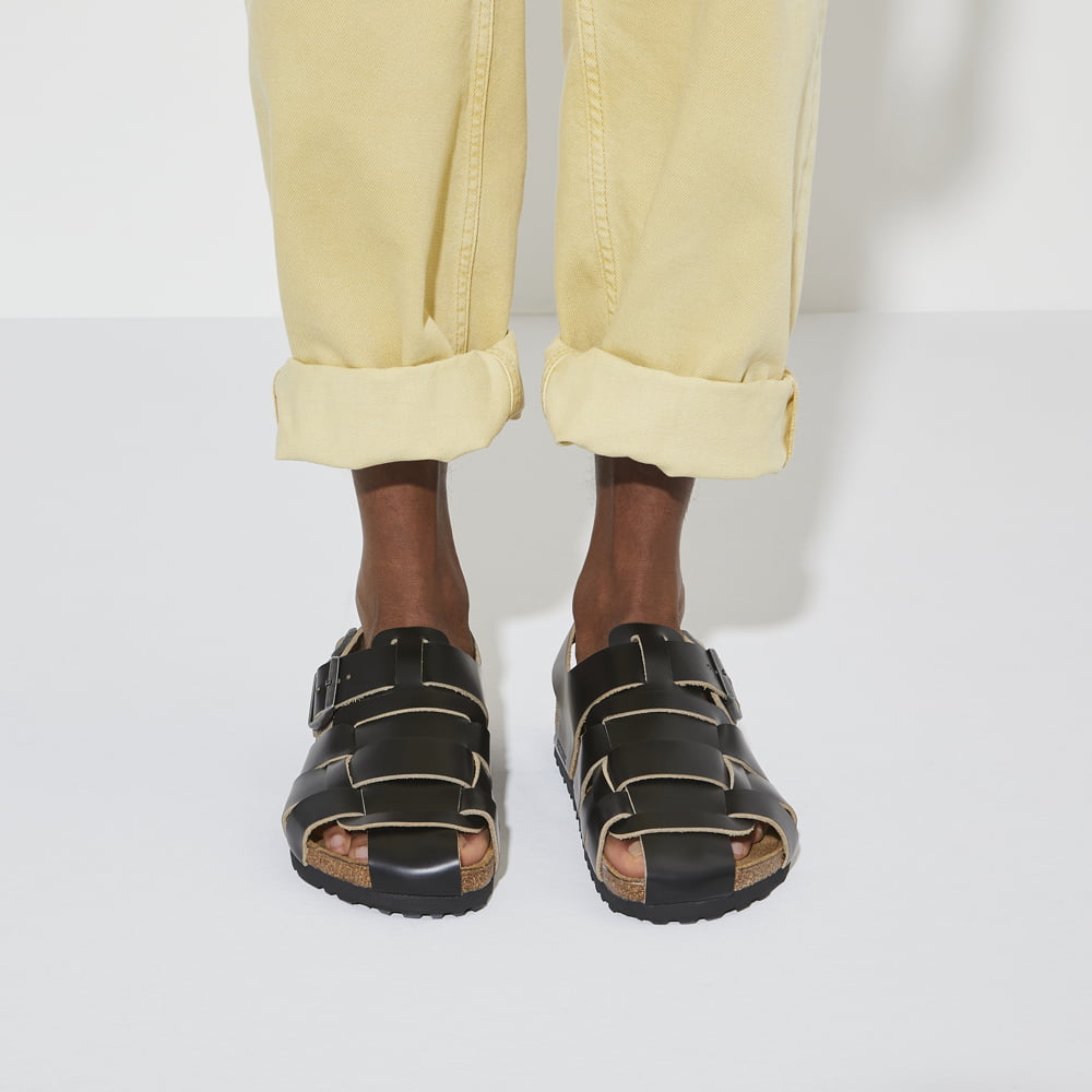 The BIRKENSTOCK Hagi is impressive on outdoor adventures and city trips alike. The sandal delights on account of its natural œfisherman� look. Its signature feature is the supporting central bar with leather straps running through its loops. Thanks to its two components, the sole promotes stability and comfort. It comprises a cushioning midsole made of EVA and an outsole made of genuine rubber. The upper is made of high-quality, soft natural leather.