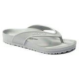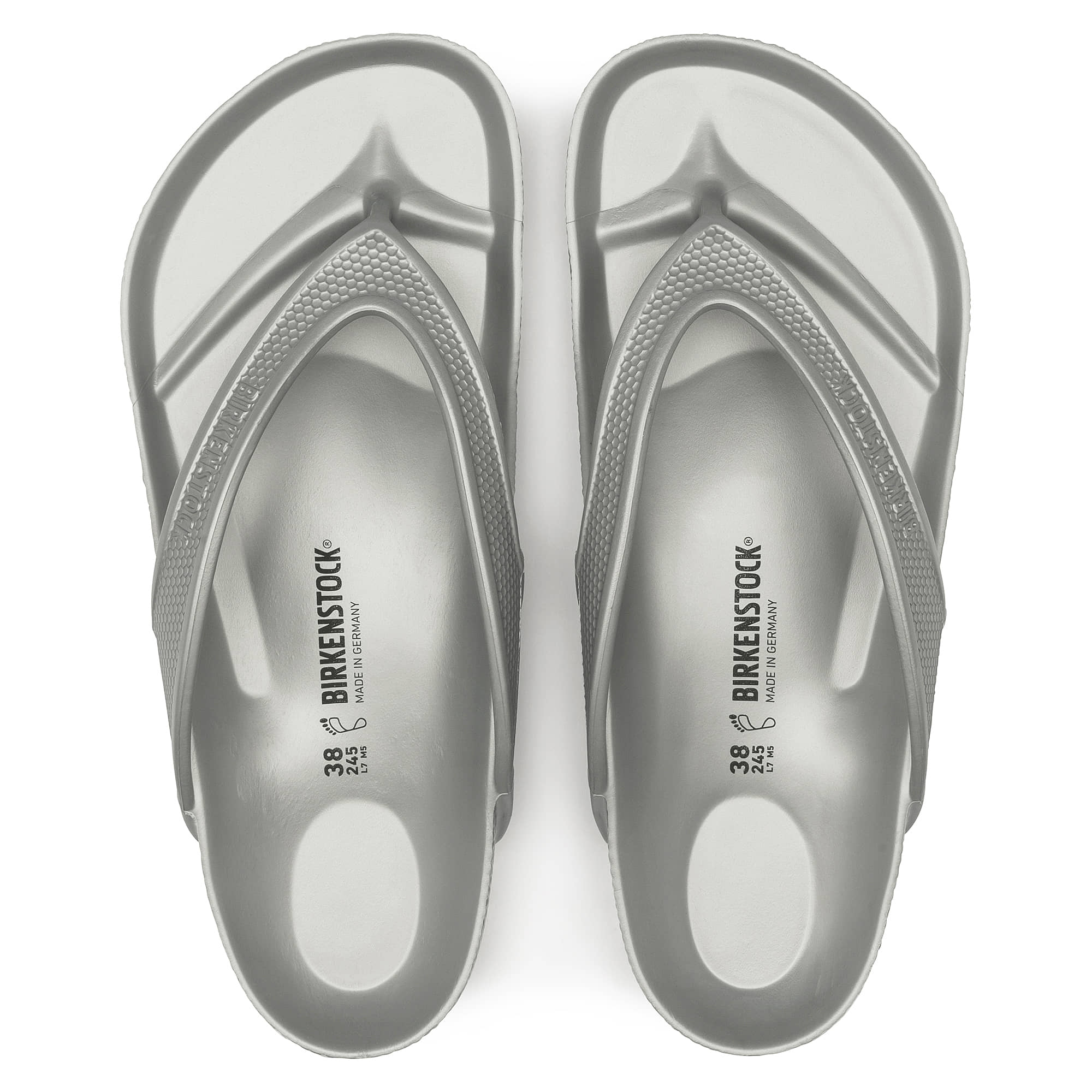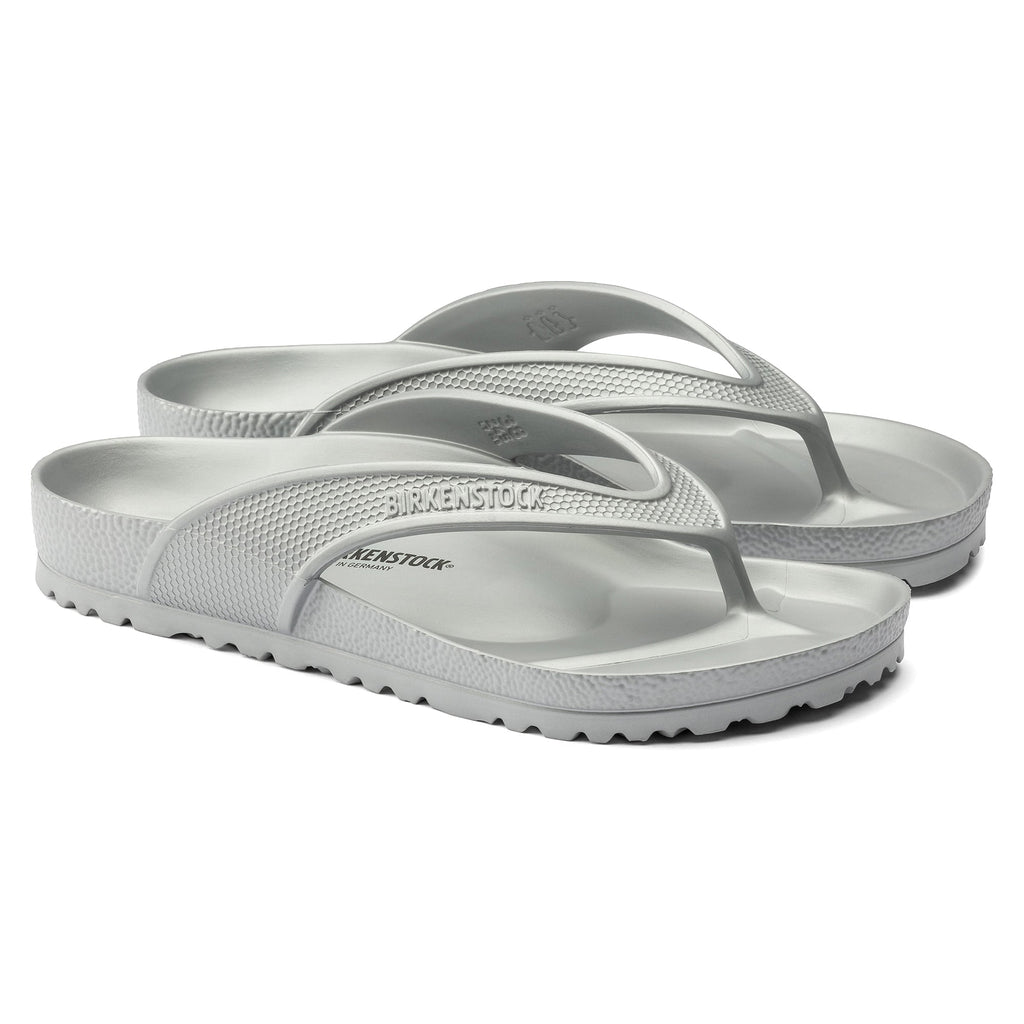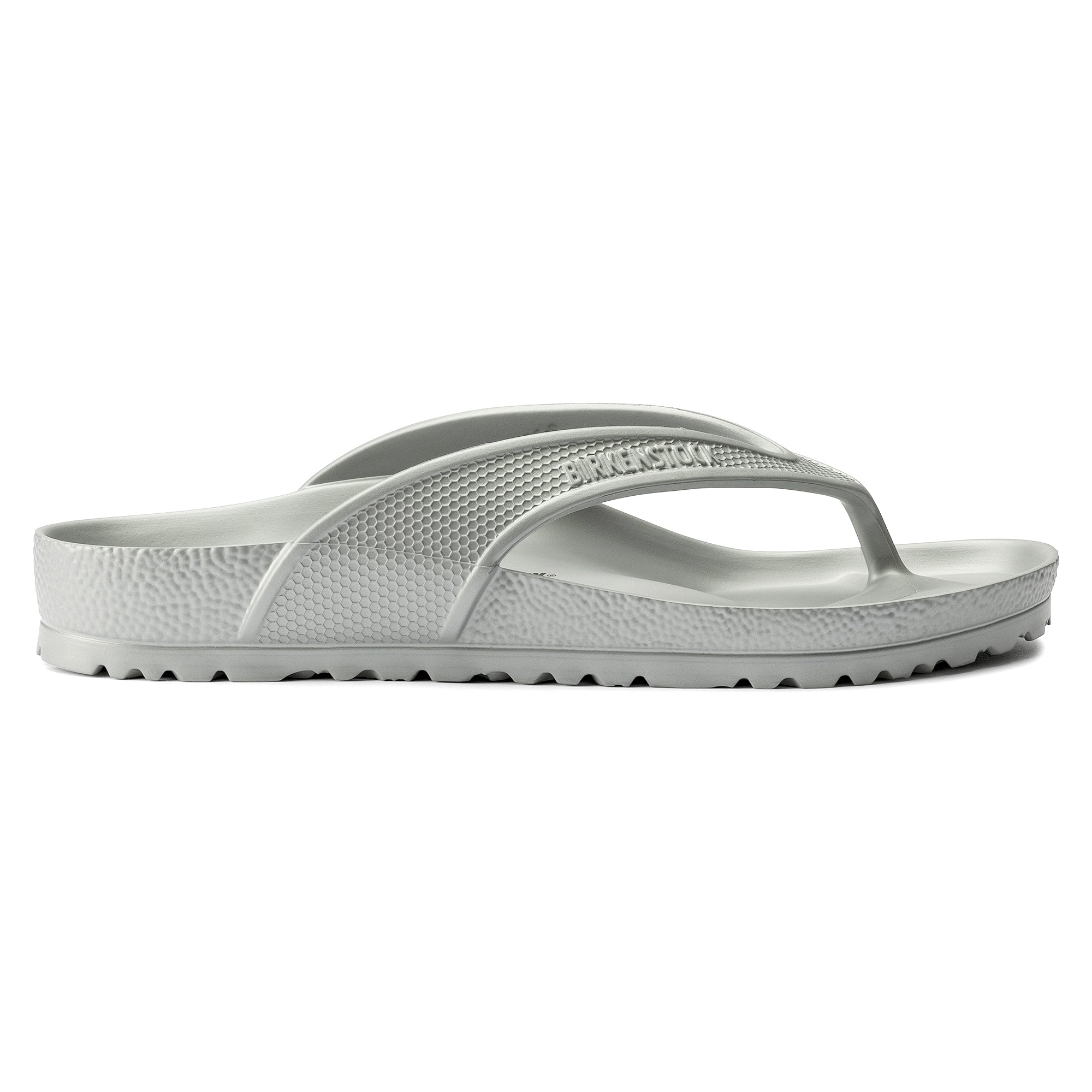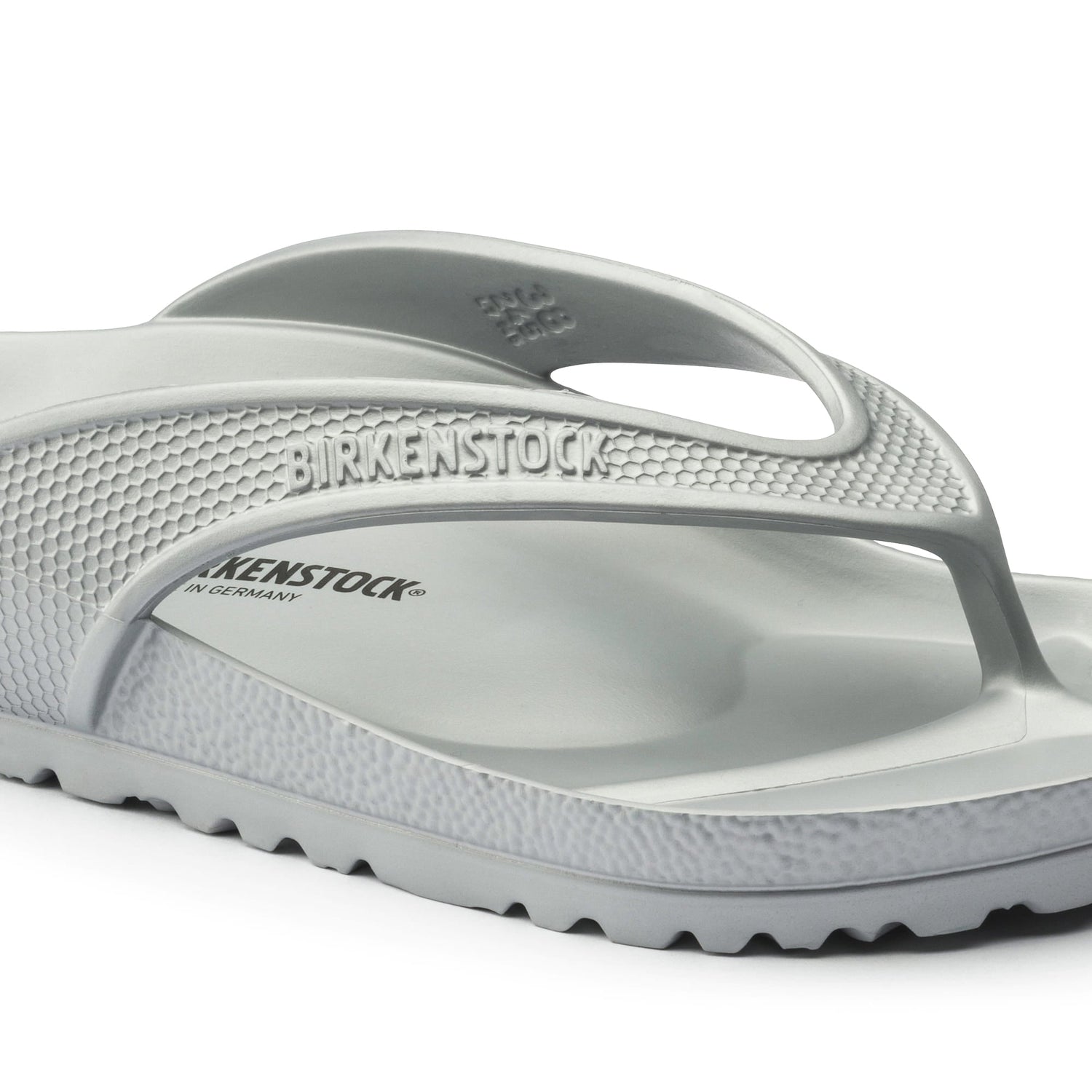 The BIRKENSTOCK Honolulu is a sporty thong sandal with a hexagon pattern. It perfect for anyone who is looking in particular for function and comfort. Modeled on the cork sandal, this sandal is made from especially light and flexible EVA. This high-quality, odor-neutral synthetic material which has been tested for harmful substances is shock-absorbent, waterproof, and skin-friendly. It therefore perfect for wearing at the beach, in the garden, or in wellness and spa areas.