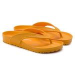 The BIRKENSTOCK Honolulu is a sporty thong sandal with a hexagon pattern. It perfect for anyone who is looking in particular for function and comfort. Modeled on the cork sandal, this sandal is made from especially light and flexible EVA. This high-quality, odor-neutral synthetic material which has been tested for harmful substances is shock-absorbent, waterproof, and skin-friendly. It therefore perfect for wearing at the beach, in the garden, or in wellness and spa areas.