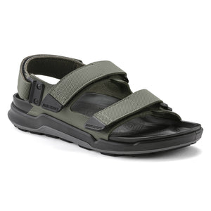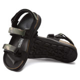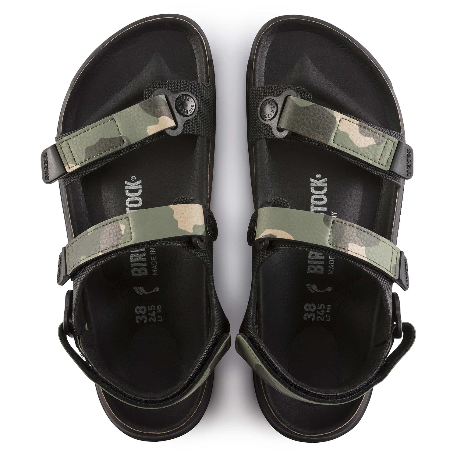 The BIRKENSTOCK Kalahari is a variation of the classic Milano and is the perfect sandal for anyone who is on their feet all day. The pin buckles have been replaced by hook-and-loop fasteners and the heel of the sole has been reinforced. The Kalahari boasts a high level of comfort and great functionality. The sporty Adventure Crosscountry version is designed for BIRKENSTOCK fans who are active and looking for an experience. The color-coordinated footbed rounds off the shoes look of sophistication. The non-slip and abrasion-resistant sole promotes a firm footing. The upper is made from the skin-friendly, hard-wearing synthetic material Birko-Flor® which was reinterpreted with a futuristic look.