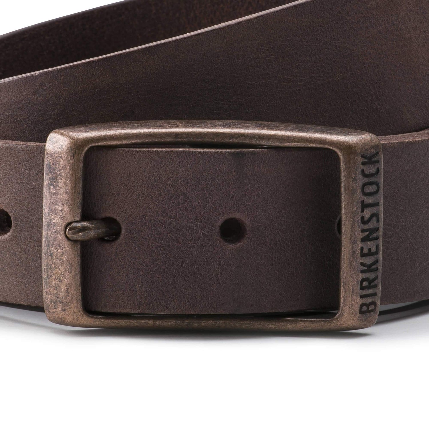 The Kansas is a sleek, understated belt made of premium-quality vegetable-tanned full-grain leather. The leather is oiled, which makes for a richer appearance. The buckle sports an antique look with an embossed BIRKENSTOCK logo. The belt is 35mm wide and is created with the same standards as all of our products, making it the perfect addition to our lineup.