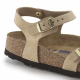 The BIRKENSTOCK Kumba is an elegant and feminine sandal with crossed straps and an ankle strap for secure and comfortable grip. It's just the thing for hot summer days. With its additional foam layer, the soft footbed offers extra comfort and pampers feet all day long. The upper is made from high-quality, extra soft nubuck leather that boasts a natural, rustic appearance.