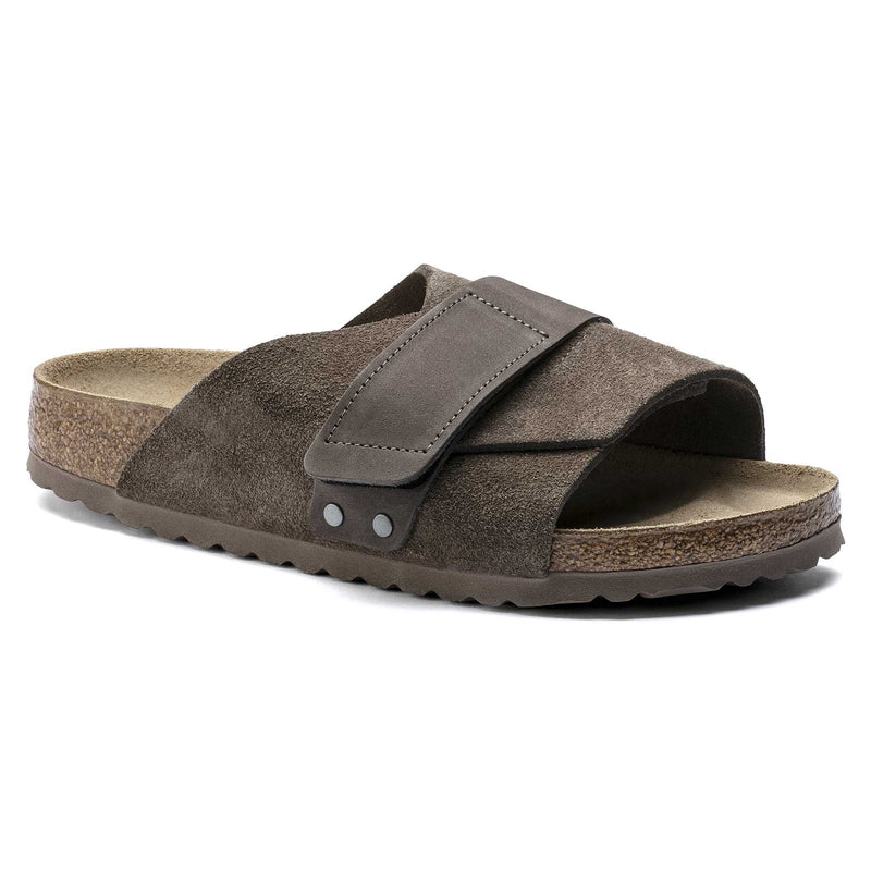The casual BIRKENSTOCK Kyoto takes its inspiration from the classic Zurich model and stands out with its compact design and individually adjustable buckle. This offers optimum grip and is complemented by two decorative rivets. The upper is made from especially soft suede which hugs the foot like a second skin.