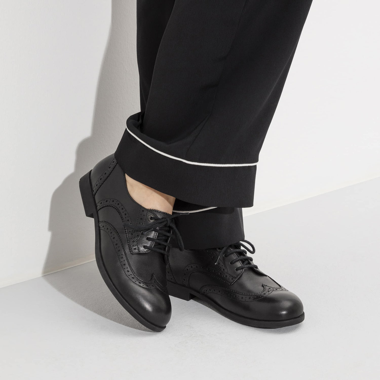 Comfort, design, and consummate craftsmanship all go hand in hand on the BIRKENSTOCK Laramie Low. The sophisticated lace-up low shoe has a classically elegant look and impresses with its simplicity and broguing. The sole is made from synthetic materials and is pleasantly light. The upper is made from high-quality, particularly soft natural leather.