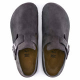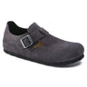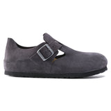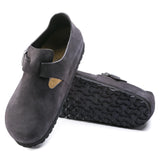 The BIRKENSTOCK London is a variation on the classic Boston shoe. The raised heel section is characteristic of this simple low shoe with no stitching. It boasts a natural, rustic look and an open-selvage, unlined finish. Its natural design is also down to the upper made from especially soft suede, which hugs the foot like a second skin.