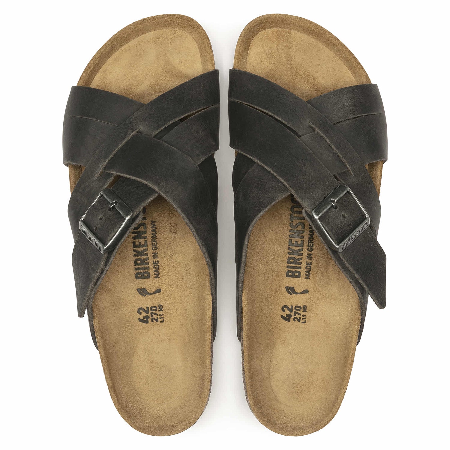 The BIRKENSTOCK Lugano Nubuck Leather Gray and Brown sandals a crossed-strap sandal in a sophisticated cut which can be mixed and matched with all kinds of outfits. The upper is made from high-quality nubuck leather that boasts a natural, rustic appearance.