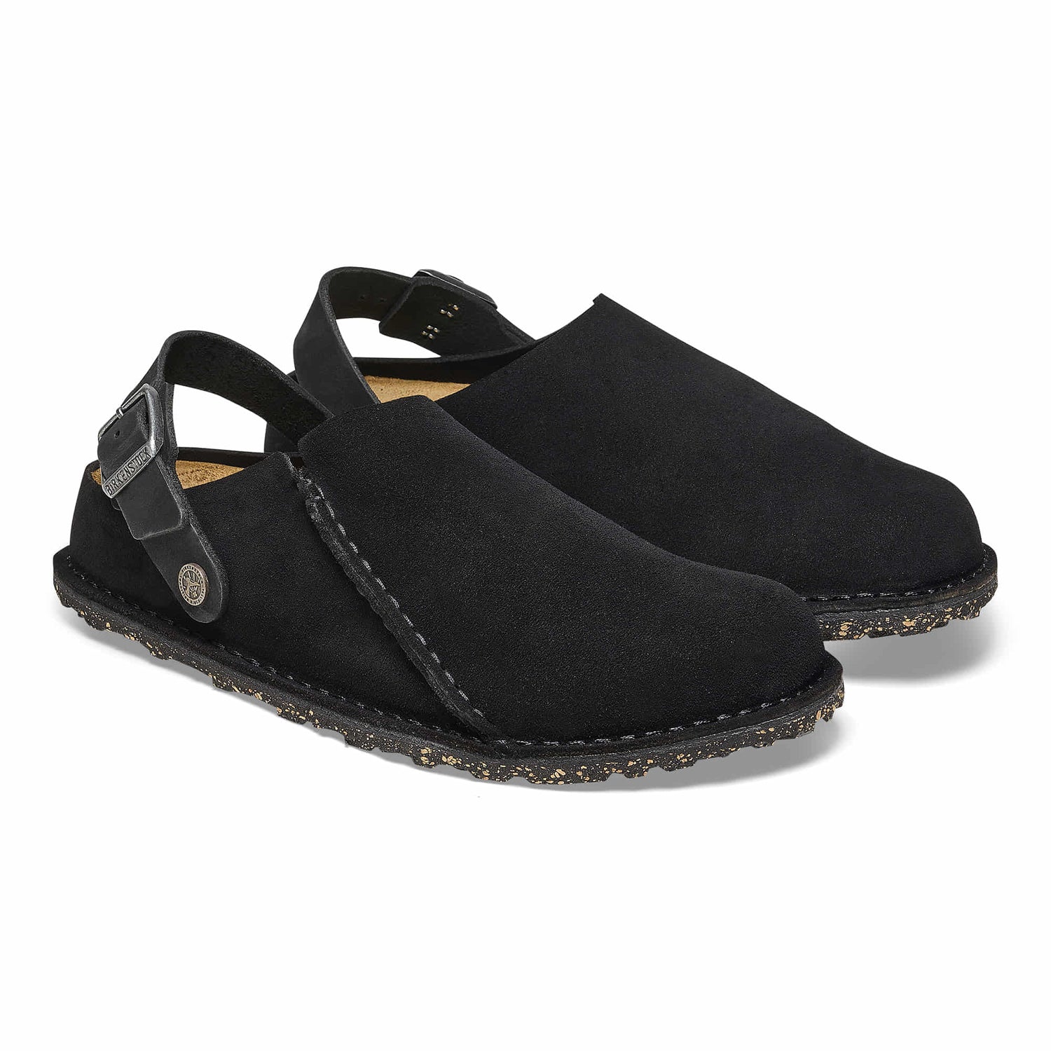 The BIRKENSTOCK Lutry is a slipper that can be worn as a backstrap style or as an open clog thanks to the flexible ankle strap. The footbed can be removed so that you can choose between three different footbed versions. This basic version of this design features our Standard Footbed. It replicates the natural print made by a foot walking on sand and will see you through the day in comfort. Its natural design is down to the upper made from especially soft suede, which hugs the foot like a second skin.