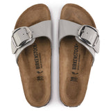 The BIRKENSTOCK Madrid is a genuine classic that delights the world of fashion with its minimalist design. The Big Buckle version features a large, elegant pin buckle a fantastic, striking eye-catcher on this otherwise understated sandal. The upper is made from the skin-friendly, hard-wearing synthetic material Birko-Flor® with a shiny patent coating.