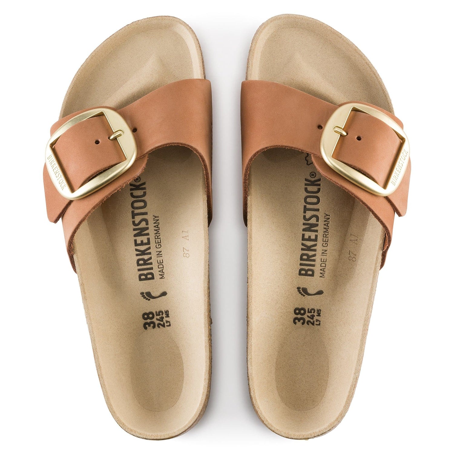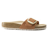 The BIRKENSTOCK Madrid Big Buckle Nubuck Leather multi-color sandal is a veritable classic that delights the world of fashion with its minimalist design. The Big Buckle version features a large, elegant tongue buckle a fantastic, striking eye-catcher on this otherwise understated sandal. The upper is made from high-quality nubuck leather that boasts a natural, rustic appearance.