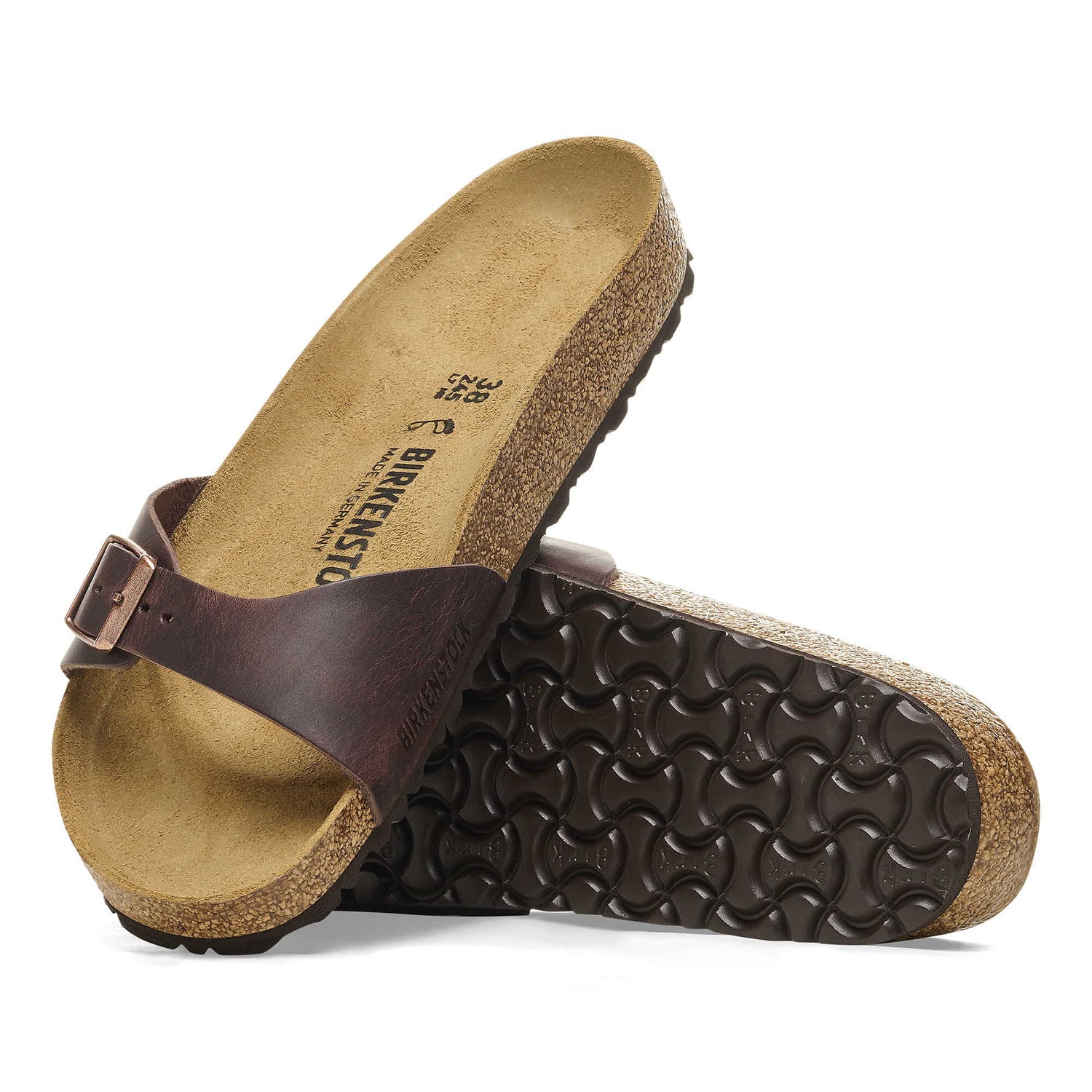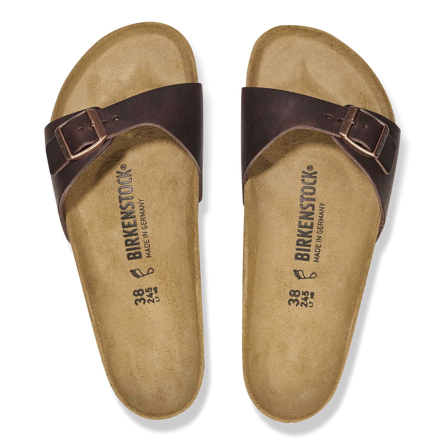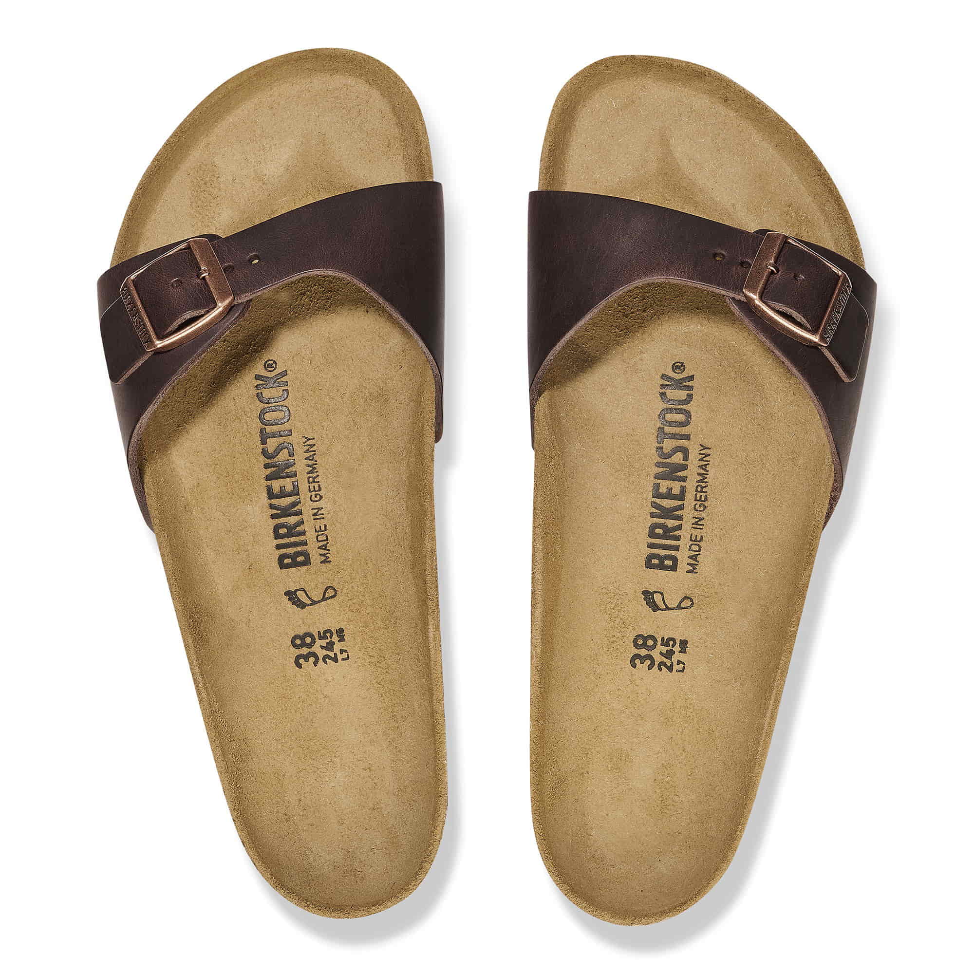 The BIRKENSTOCK Madrid is the oldest member of the family of models, making it a veritable classic. Launched as a œgymnastics sandal� half a century ago, this simple single-strap model has gone on to become a firm fashion favorite. The upper is made from extra thick, oiled nubuck leather with an open-selvage finish.