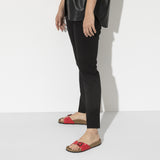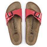 The BIRKENSTOCK Madrid is the oldest member of the family of models, making it a veritable classic. Launched as a gymnastics sandal" half a century ago, this simple single-strap model has gone on to become a firm fashion favorite. The upper is made from the skin-friendly, hard-wearing synthetic material Birko-Flor® with a shiny patent coating.