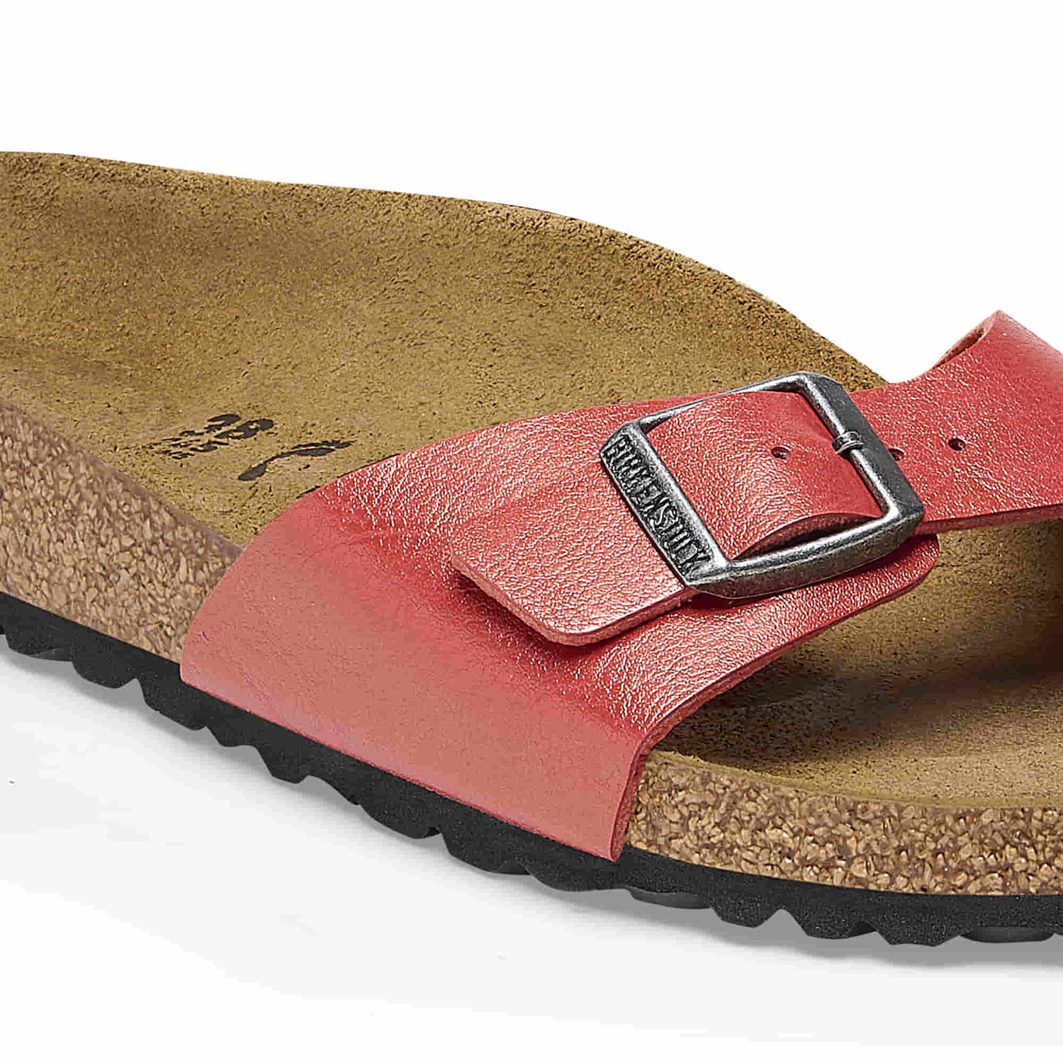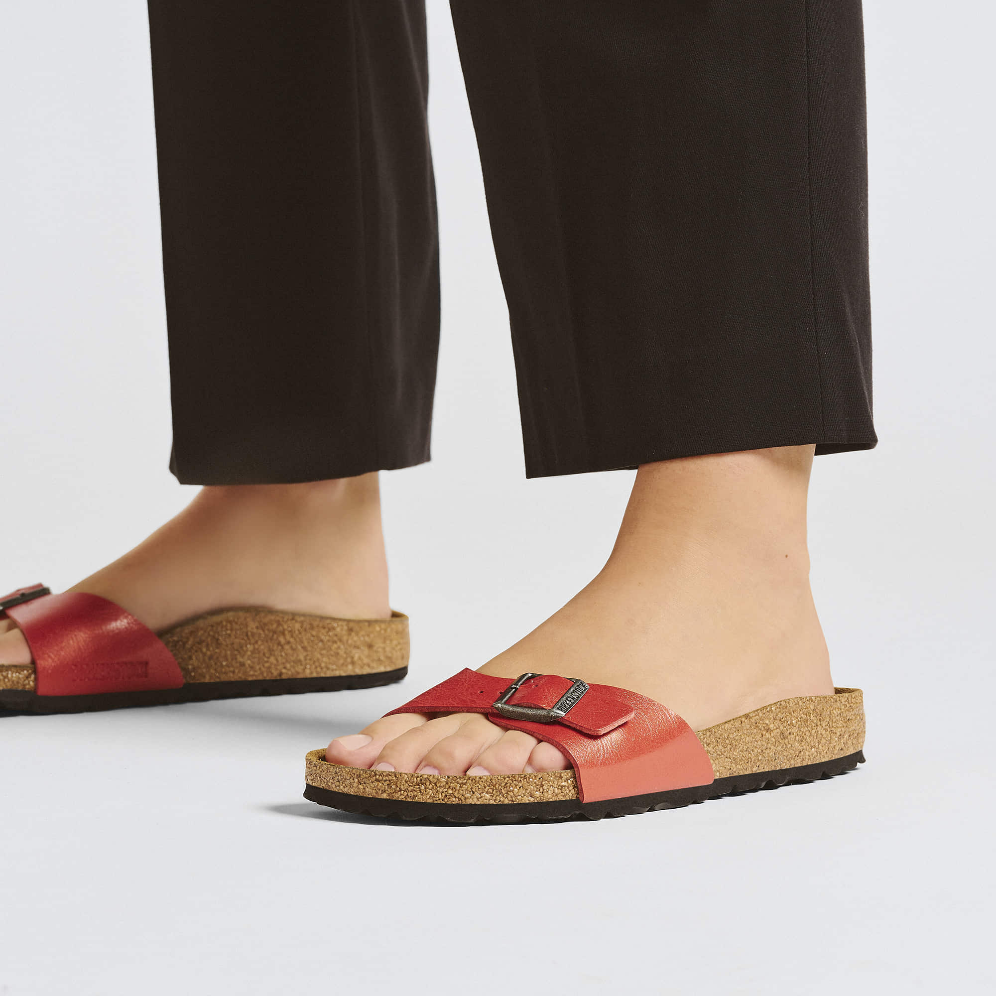 The BIRKENSTOCK Madrid is a veritable classic that delights the world of fashion with its minimalist design. Here, we see the sandal with a silky sheen finish. The upper is made from the skin-friendly, hard-wearing synthetic material Birko-Flor®.