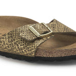 The very deep molding in the heel area supports the foot tissue and holds the heel bone firmly in its natural position. This provides the foot with nearly as much support when it is in a sandal as when it is in a closed shoe.