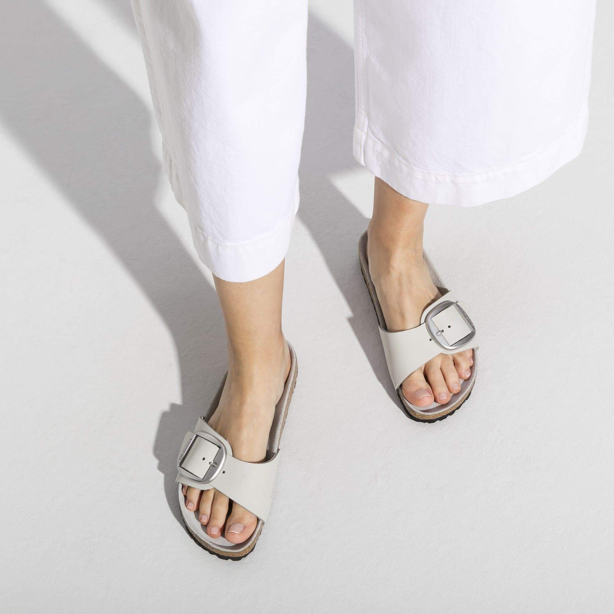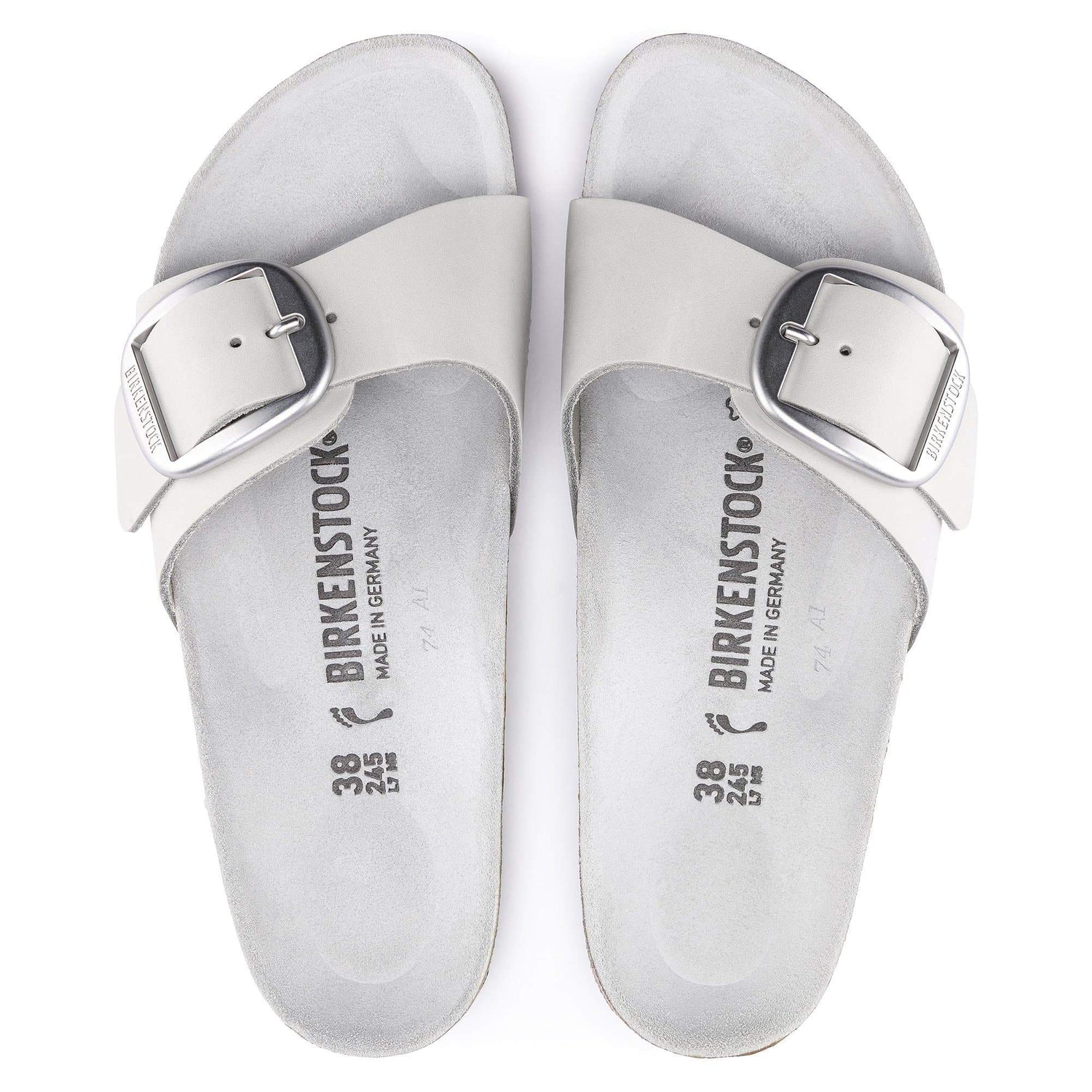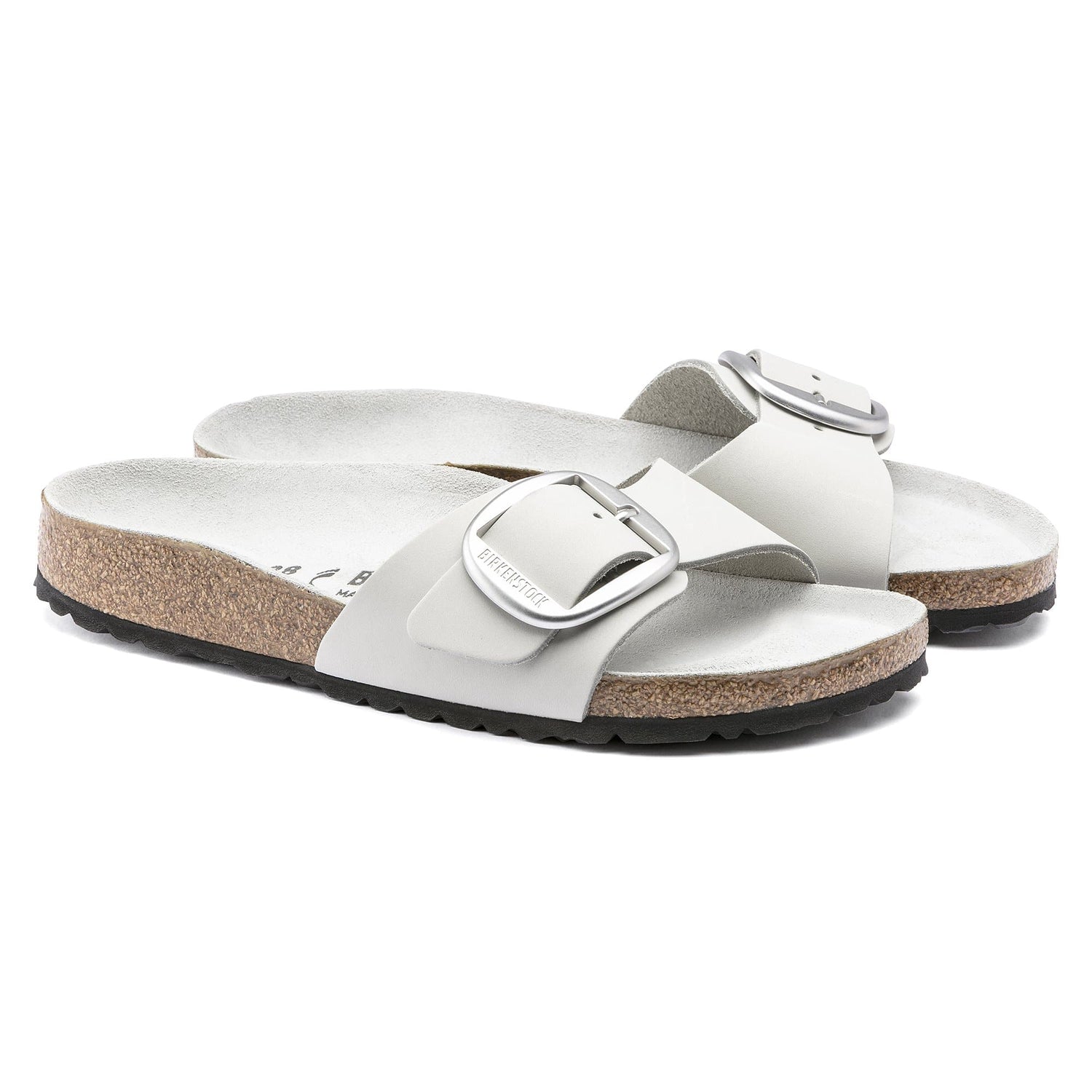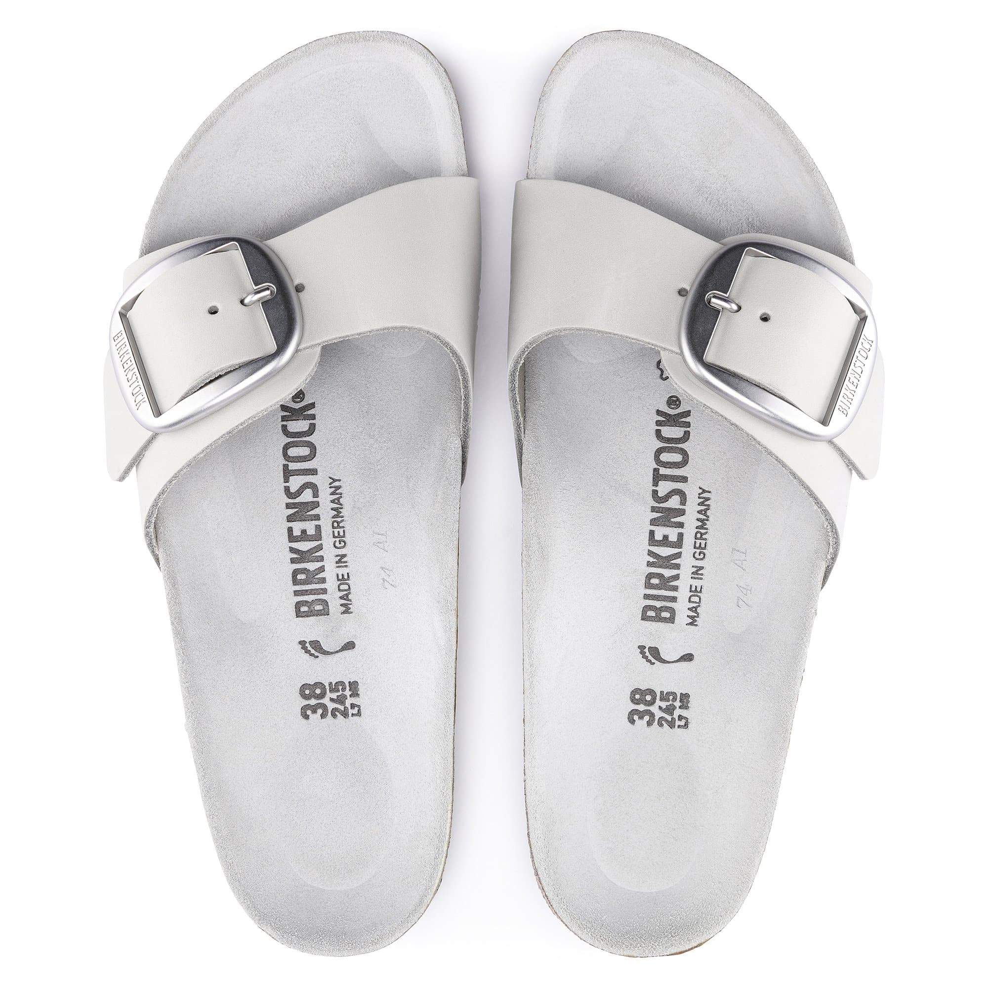 The BIRKENSTOCK Madrid Big Buckle Nubuck Leather multi-color sandal is a veritable classic that delights the world of fashion with its minimalist design. The Big Buckle version features a large, elegant tongue buckle a fantastic, striking eye-catcher on this otherwise understated sandal. The upper is made from high-quality nubuck leather that boasts a natural, rustic appearance.