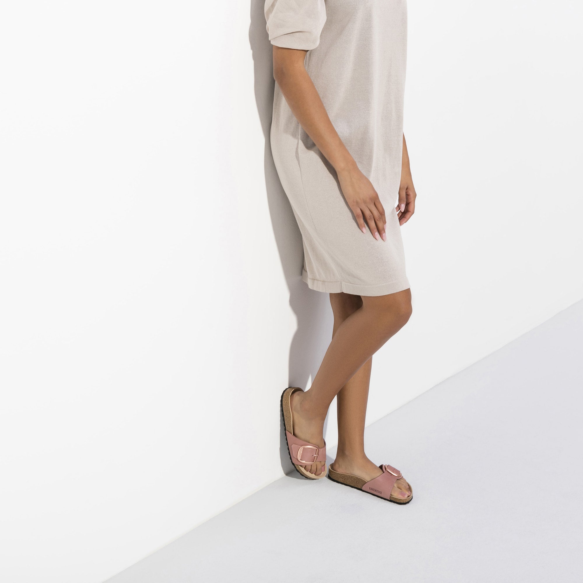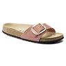 The BIRKENSTOCK Madrid Big Buckle Nubuck Leather multi-color sandal is a veritable classic that delights the world of fashion with its minimalist design. The Big Buckle version features a large, elegant tongue buckle a fantastic, striking eye-catcher on this otherwise understated sandal. The upper is made from high-quality nubuck leather that boasts a natural, rustic appearance.
