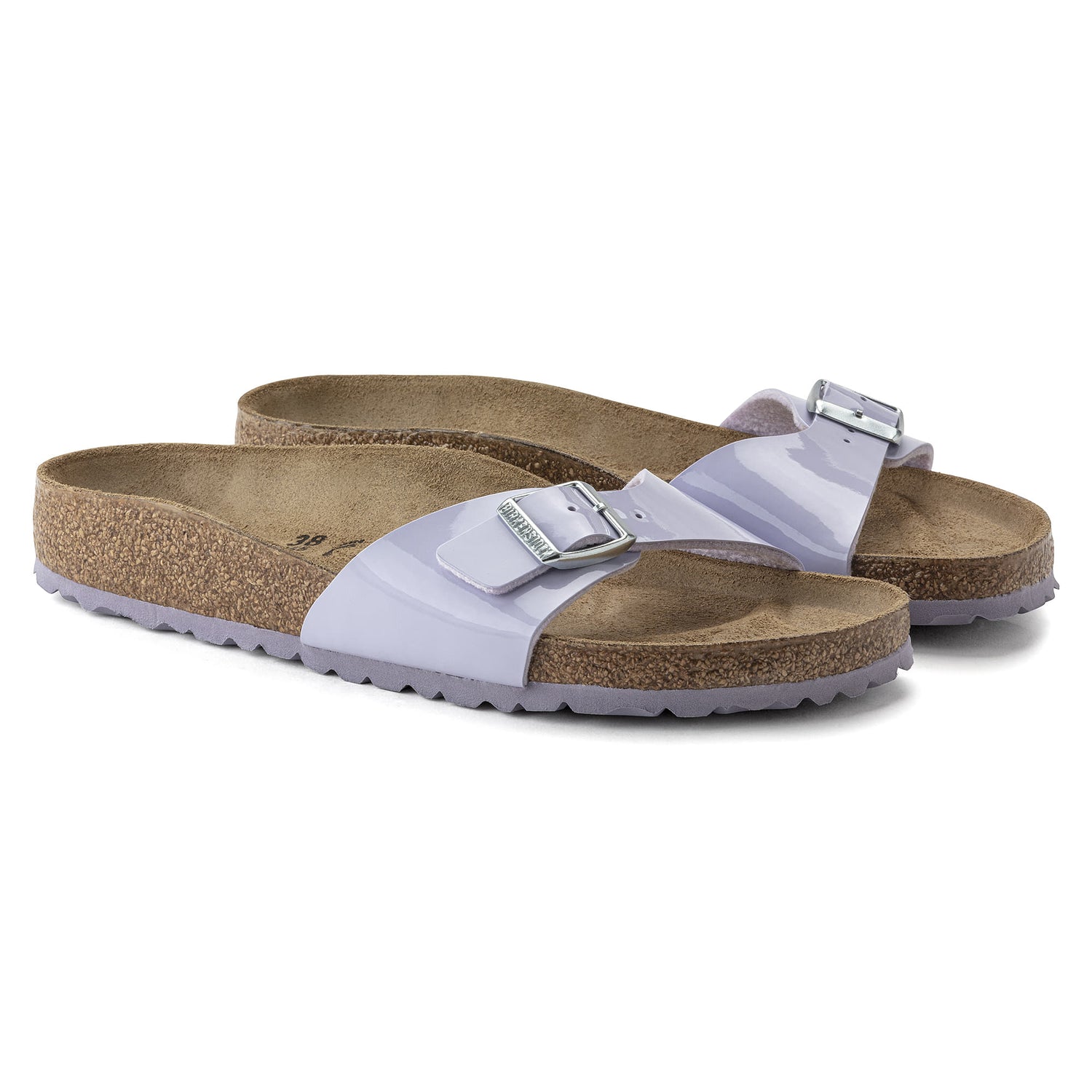 The BIRKENSTOCK Madrid is a veritable classic that delights the world of fashion with its minimalist design. The color-contrasting outsole stands out strikingly against the upper and rounds off the look. The upper is made from the skin-friendly, hard-wearing synthetic material Birko-Flor® with a shiny patent coating.
