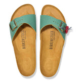 The BIRKENSTOCK Madrid is the oldest member of the family of models, making it a veritable classic. Launched as a gymnastics sandal half a century ago, this simple single-strap model has gone on to become a firm fashion favorite. We are now giving this popular classic the opportunity to show off its original design in our anniversary collection. With its buckles, the footbed, the outsole, and the packaging, the sandal replicates the 1963 original and exudes veritable retro flair. Every pair of the limited edition bears is own unique number and comes with the red BIRKENSTOCK seal and matching socks. The upper is made from soft, grained natural leather.