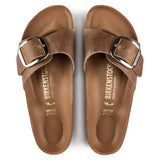 The popular BIRKENSTOCK Madrid Big Buckle Oiled Leather Black and Brown sandal has been given an update. As the name suggests, the Big Buckle version features a large and elegant pin buckle a delightful eye-catcher on the otherwise understated leather strap. This makes the sandal an exceptionally classic and feminine model. To create a natural look, nubuck leather with an oiled finish has been used and the sole has been lined with nappa leather.