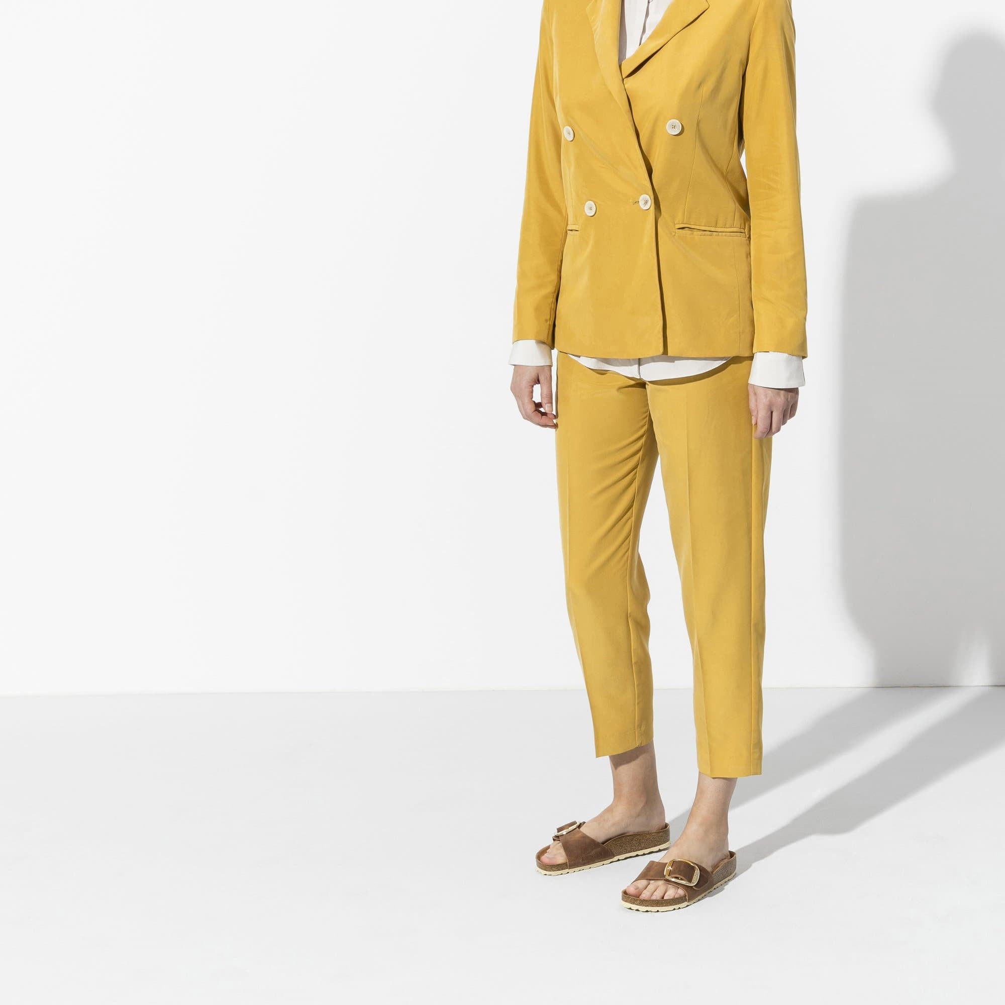 The popular BIRKENSTOCK Madrid Big Buckle Oiled Leather Black and Brown sandal has been given an update. As the name suggests, the Big Buckle version features a large and elegant pin buckle a delightful eye-catcher on the otherwise understated leather strap. This makes the sandal an exceptionally classic and feminine model. To create a natural look, nubuck leather with an oiled finish has been used and the sole has been lined with nappa leather.