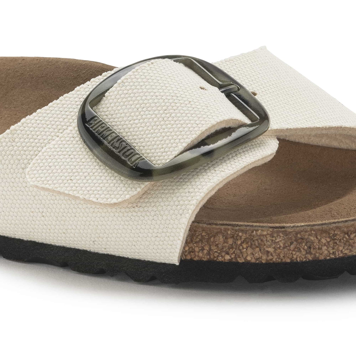 The BIRKENSTOCK Madrid is a veritable classic that delights the world of fashion with its minimalist design. This version comes with our popular Big Buckle. This sandal has been given an update in a new material, with a vegan version now available. It is entirely free of animal products, as verified by independent testing laboratories. The printed buckles are sophisticated eye-catchers. The upper is made from a soft fabric.